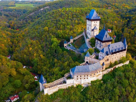 Karlstejn Castle — Just 40 minutes from Prague by train, the Disney-esque Karlstejn Castle is one of the easier day trips to make from Prague. Located atop a hill and surrounded by lush woodlands and vineyards, the castle was constructed for Charles IV between 1348 and 1365, mainly as a place for his royal treasures — including the crown jewels. Reconstructed several times, today its splendorous interior includes the gold-and-jewel-encrusted Chapel of the Holy Cross, a Hall of Knights, a royal bedroom, and an audience hall. Guided tours are available, but even without the tour, it’s worth the 30-minute walk up the hill to admire the castle from outside and enjoy the views. From the castle, it’s a short drive, or a 45-minute hike, to a limestone quarry called Little America, which is connected to a bigger one called Big America and considered Czechia’s “Grand Canyon” via a series of limestone caves.