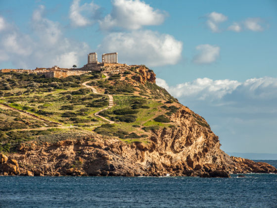 Take the bus to Cape Sounio from the KTEL bus stop on Filellinon Street, below Syntagma Square. The buses run almost every hour and a half, depending on the day of the week and the season. Cape Sounio is about 40 miles away from Athens, so it’s highly recommended to leave the city early in the morning. The cape is renowned for the Temple of Poseidon, an ancient monument on a point overlooking the Aegean Sea. You probably saw some of the sculptures that embellished the temple the day before at the National Archaeological Museum of Athens.