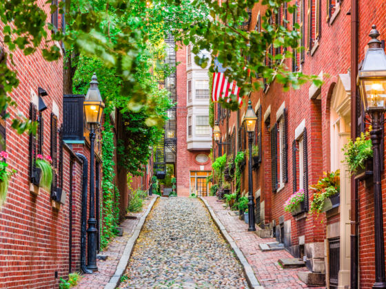 Between the Boston Public Market and Boston Common is Beacon Hill, one of the most historic neighborhoods in the city. It’s also one of the most charming with red-brick rowhouses lining gaslit cobblestone lanes, brownstones butting up against boutiques and bistros, and the gold-domed Massachusetts State House overlooking it all.