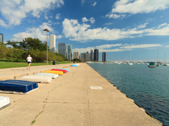 The Lakefront — What Chicagoans think of the lakefront is actually four separate parks: Lincoln Park, Grant Park, Burnham Park, and Jackson Park. Connecting all of them is the 18-mile Chicago Lakefront Trail, which is popular with bikers, joggers, and people just out for a walk. Chicago’s Lakefront includes beaches, sports fields, golf courses, nature reserves, fishing piers, lagoons, harbors, and the totally free Lincoln Park Zoo. During all four seasons, the Lakefront is the most beautiful outdoor setting in the city.