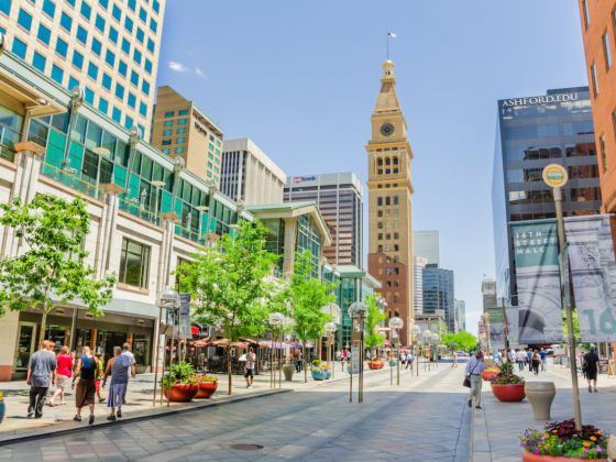 Next up is Denver’s most iconic stop, the 16th Street Mall. As you walk down the pedestrian-only plaza, duck into the Denver Pavilions for a dose of shopping, but don’t spend too much time indoors — the main thing to do on 16th St. is people watch. Buskers, jugglers, and various artists perform for the constant flow of tourists and locals walking through the mall and it’s a scene to behold. Take it in over a patio cocktail at Rialto Cafe or by planting yourself on one of the benches or seating areas along the strip. Other highlights include the Tabor Center, which houses a shopping mall and dining options at the base of a skyscraper, and Skyline Park, a skinny stretch of greenery and park space spanning multiple blocks downtown.