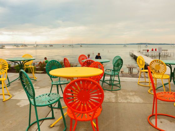 Once you’re at the end of State Street, make your way to the University of Madison Memorial Union Terrace, or simply called, The Terrace. Order a pitcher of Spotted Cow lager and take a seat at one of the brightly colored metal tables overlooking Lake Mendota. The sunburst design on all of the Terrace’s chairs dates back to the 1930s and has become a symbol of the city. Linger a while to enjoy the sunset over the lake and maybe grab a bite to eat at one of the Terrace’s food vendors before making your way back to Milwaukee for the night.