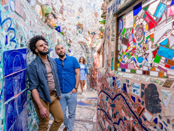 If shopping isn’t your thing, or if you’re looking to add another stop to your itinerary, head to Magic Gardens on nearby South Street. The public sculpture garden and folk art center is filled with pieces made from broken bottles and ceramic, dolls, and bicycle spokes. Tickets are $10.