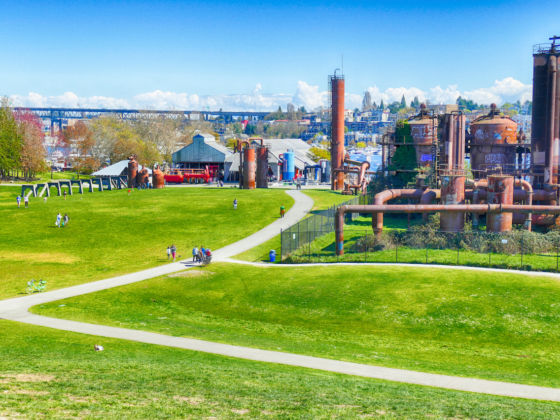 Volunteer Park — Set in a residential neighborhood in Capitol Hill, Volunteer Park is a welcoming space with sprawling green grass and mature cedar and pine trees. The Seattle Asian Art Museum is at the center of it, set in an Art Deco building dating back to 1933. The Water Tower Observation Deck offers views of the surrounding area, including the Space Needle off in the distance. Volunteer Park Conservatory displays a variety of plants in its glass house; it’s cheap for teens and adults, and free for kids. Restrooms for the park are to the right of the conservatory. You’ll find free parking down the center of the park and in front of the art museum.