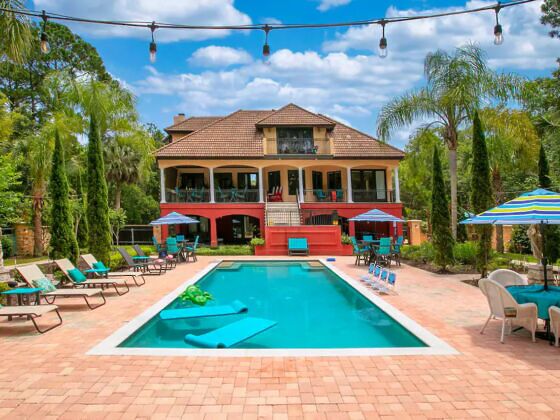 this oceanfront estate with a six-hole golf course. Rental also includes access to a private beach on the barrier island plus complimentary kayaks, bikes, and paddle boards. Non-members are welcome at the nearby Gator Trace, Fairwinds, and Savanna clubs while a day trip to Disney is ambitious yet doable.