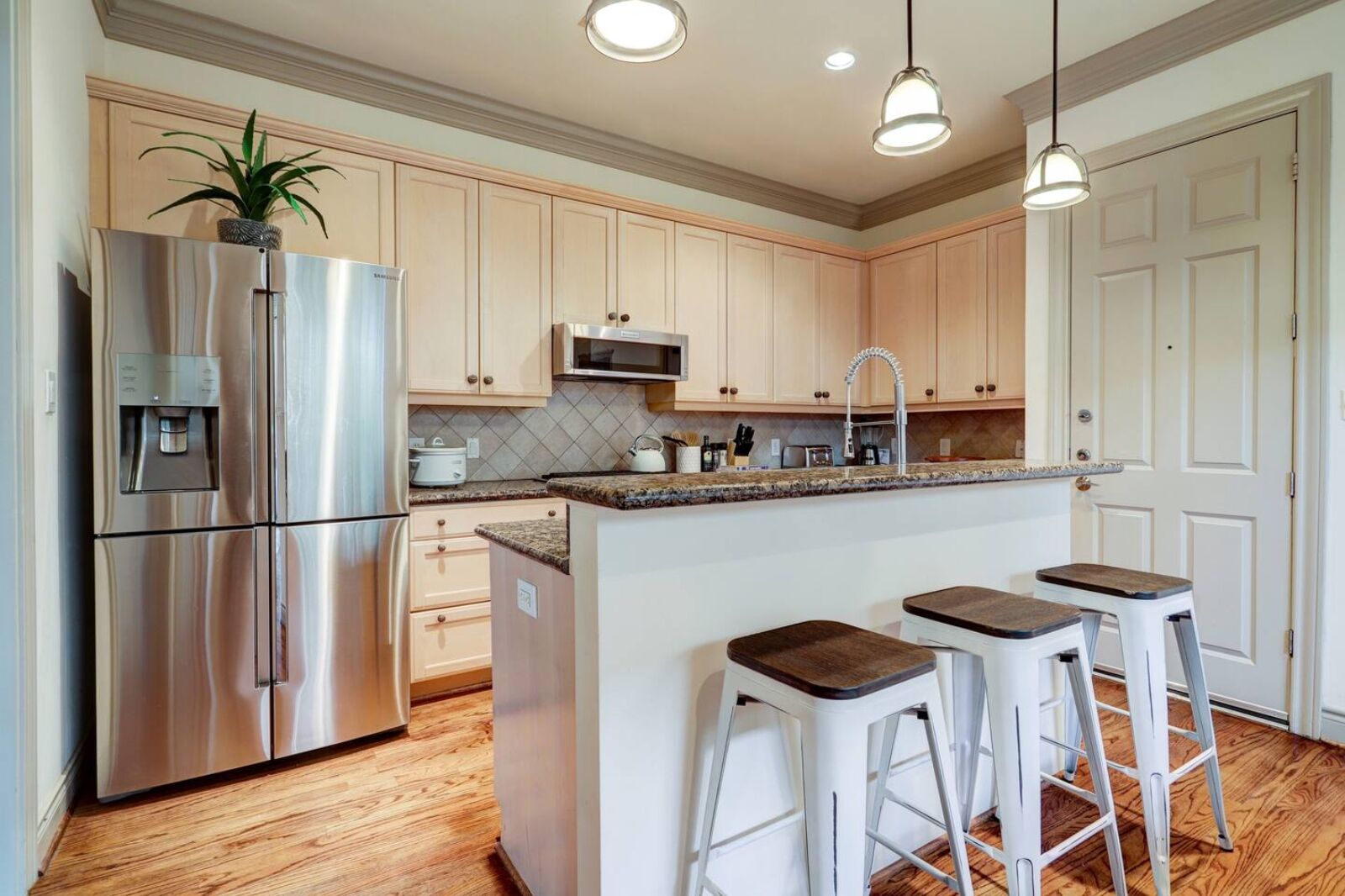This bright and airy townhome sits in East Downtown, just minutes from some of Houston’s best spots. Large windows fill the space with natural light, and the interior is modern with a few nods to Texas styling. There are three bedrooms — one with a California king-size bed and two with queen-size beds. The spacious bathroom has a soaking tub where you can unwind between outings. In the kitchen, white countertops and stainless steel appliances make it easy to cook your favorite meals. The living room has a comfortable couch, a large-screen TV, and a Bluetooth surround system.