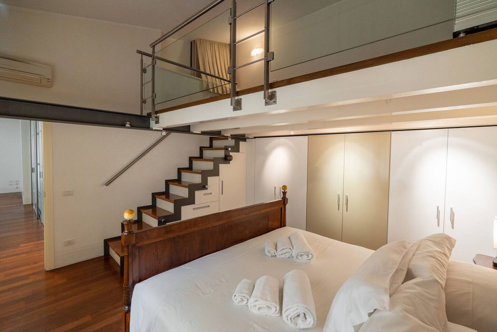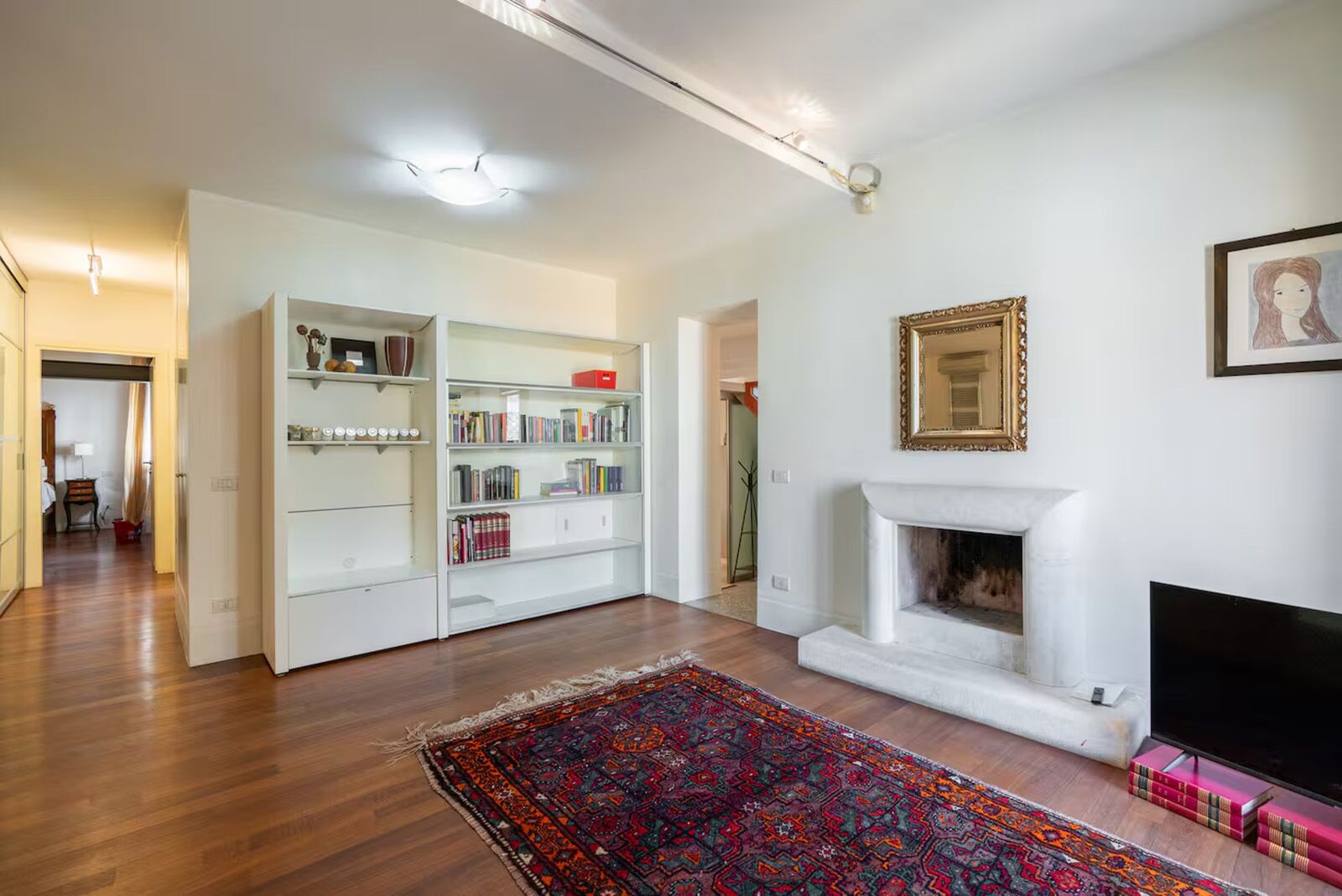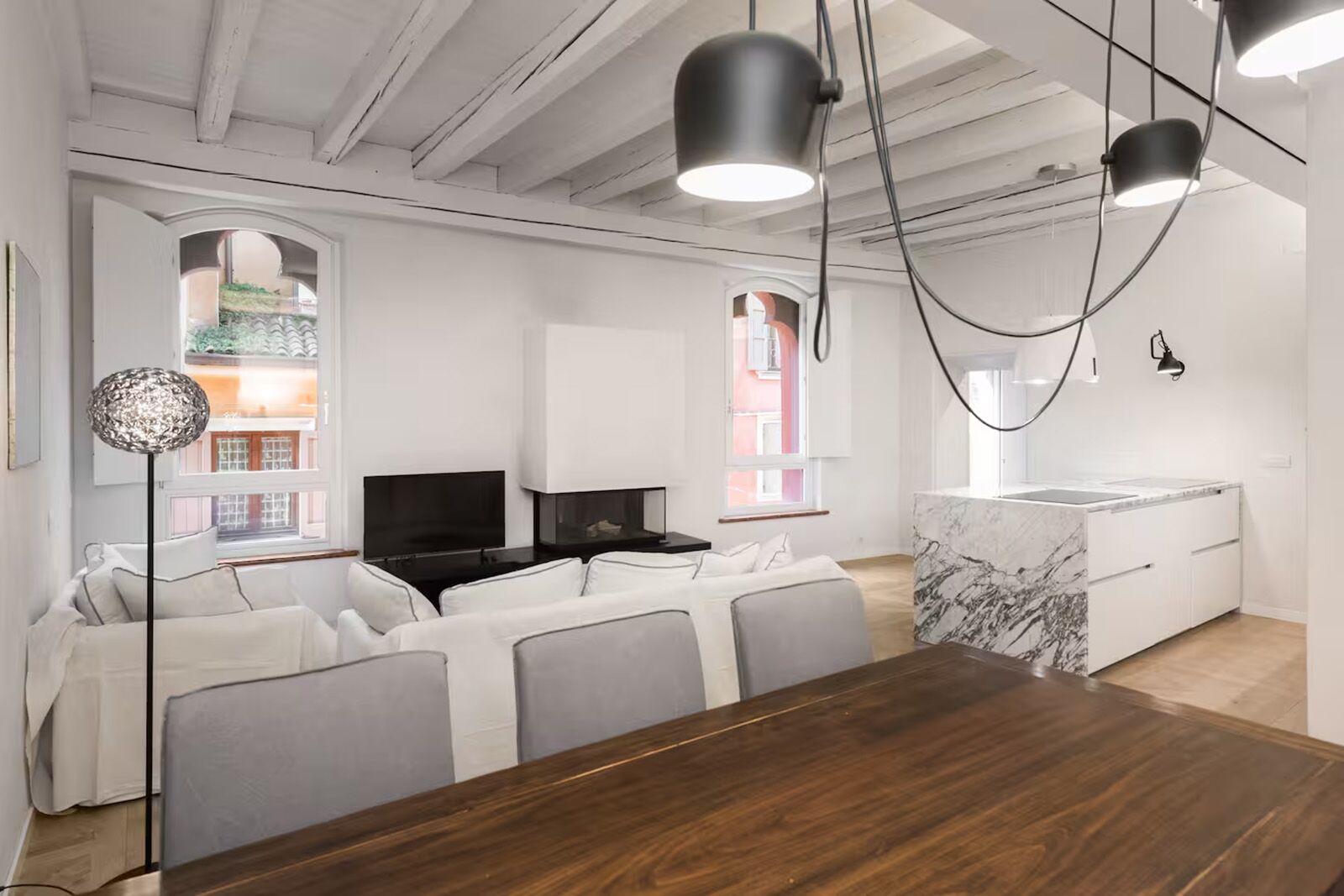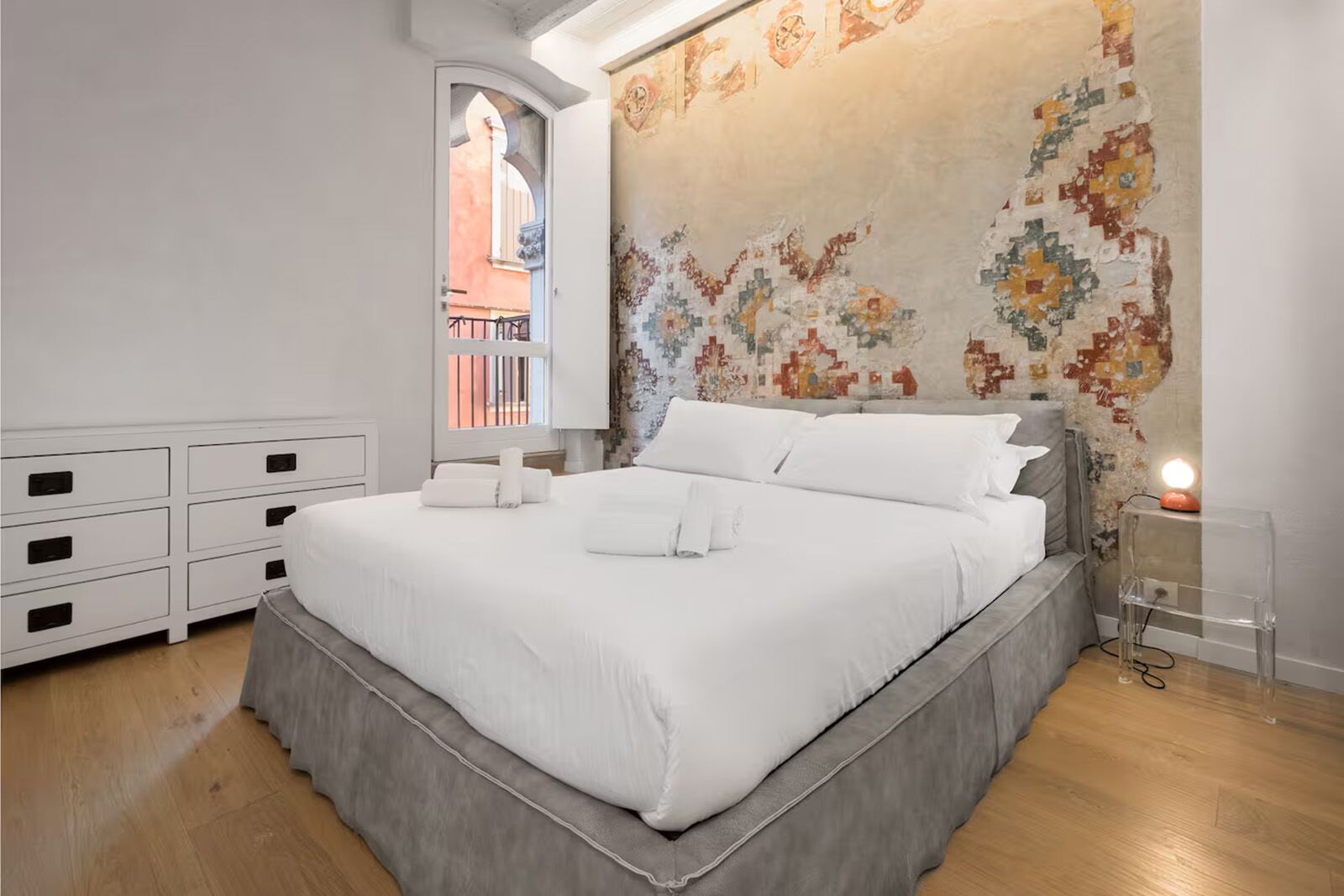 - Standout amenities: Original frescoed ceilings and walls, balcony off the main bedroom, washer and dryer, and a bright open-plan living area in a restored period building.