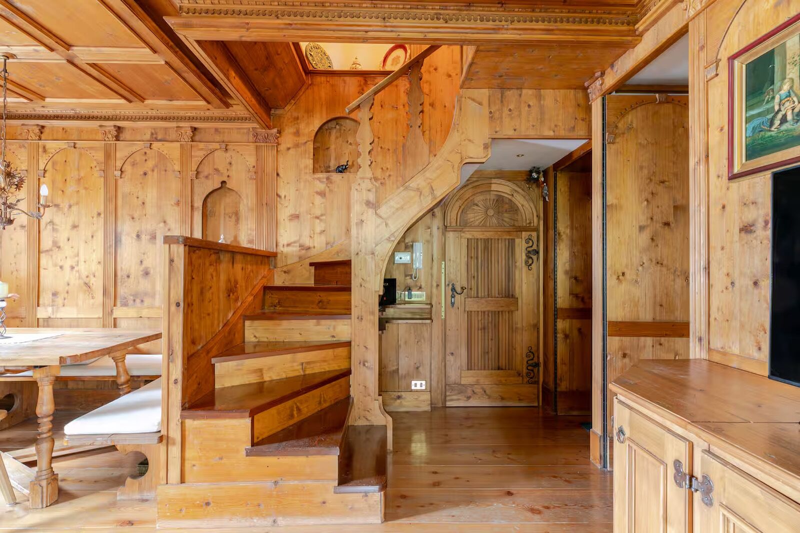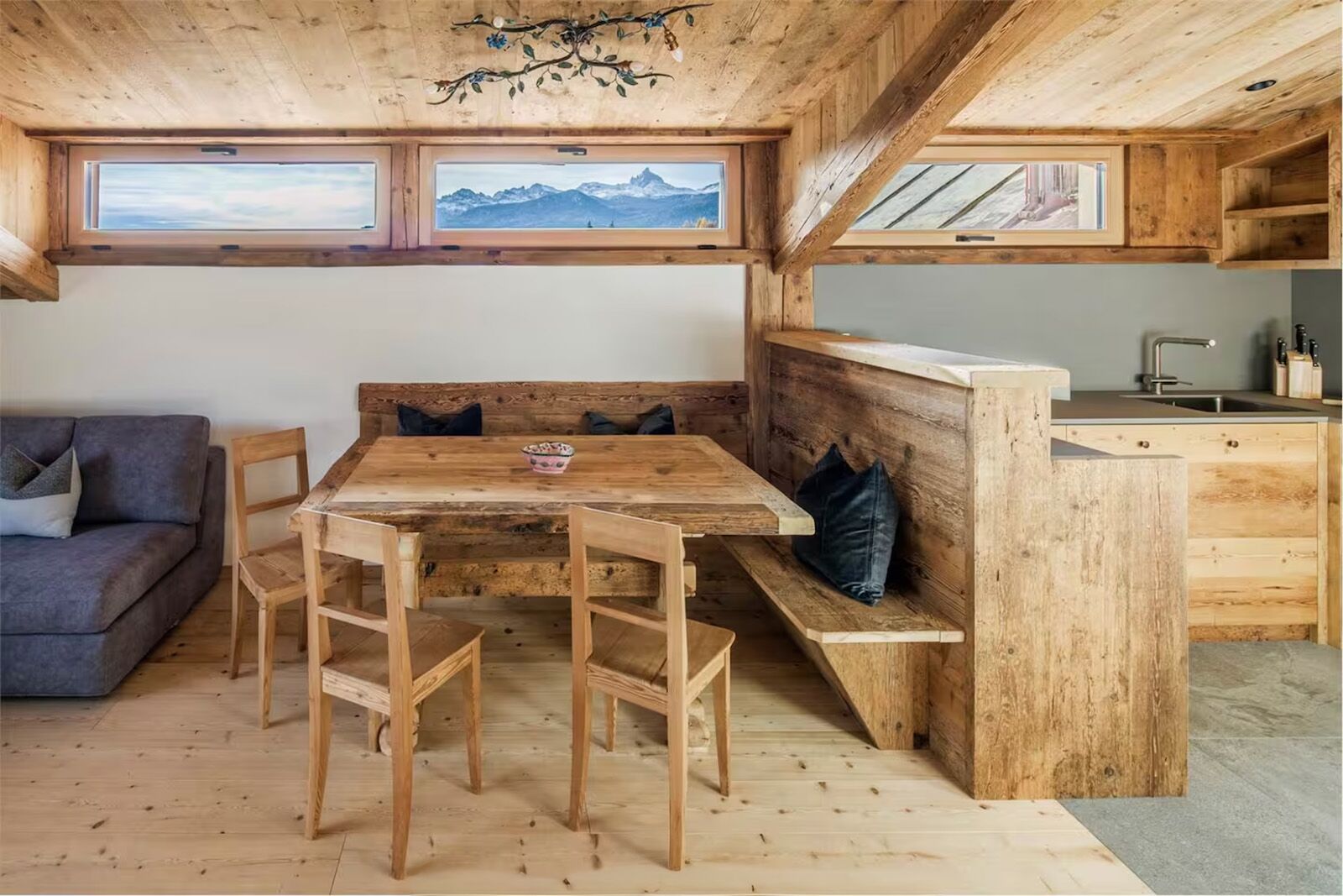 Alpine apartment with traditional wood interiors and mountain-style design details
