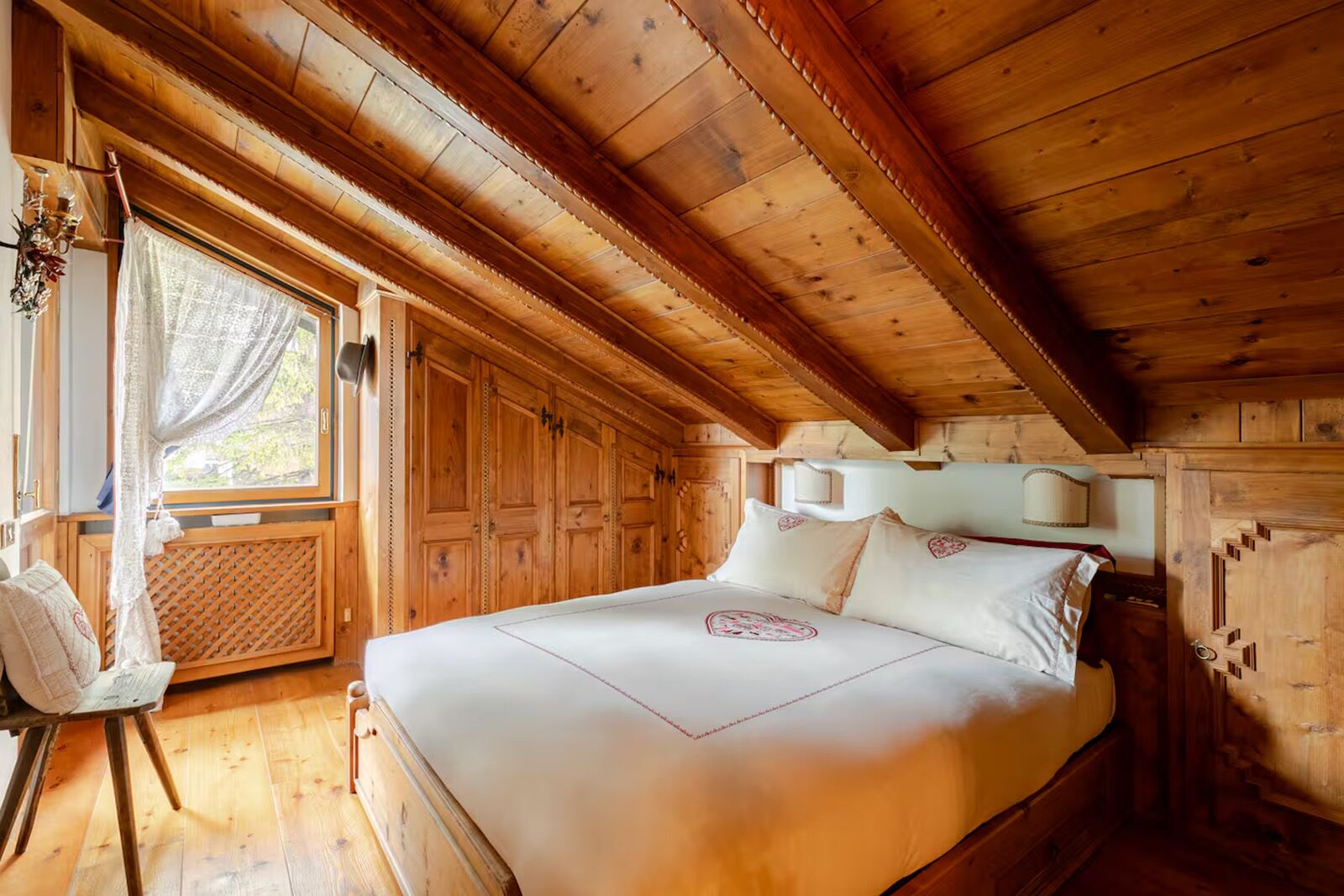 - Standout amenities: Traditional wood interiors with alpine craftsmanship, large living room with fireplace, two en-suite bedrooms each with a jacuzzi bath, furnished balcony for outdoor dining, shared garden, and on-site parking in a private villa.