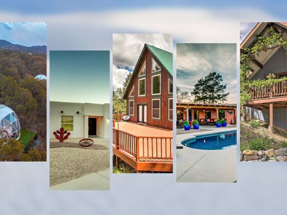 Designed for large groups and families, this chic duplex consists of five double bedrooms plus a kid-friendly bunk room. Windows climb up the walls, granting awesome views from the fireplace, the games room, and the suites. In walking distance of the breweries and bakeries of Cloudcroft village, the vacation home is steps from the Osha Trail. Forty-five minutes from the national park, you’ll spot the sea of sand from the deck.
