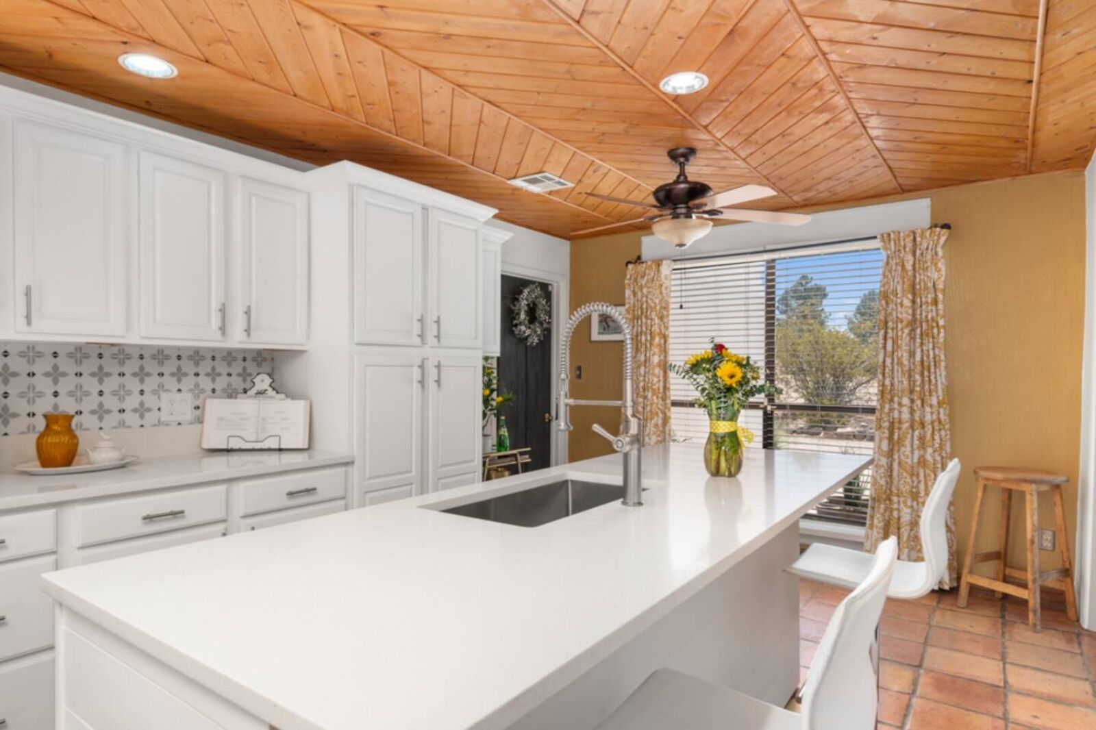 Set on one acre, this serene Pueblo-style home near Las Cruces is accented with wooden beams and ornate tiling in the kitchen and bathrooms. One room works as either a secondary lounge or a fourth bedroom. The backyard pool has ample space for sunning, grilling, and cooking up an itinerary for exploring White Sands. Situated right on the outskirts of the city, it’s a hassle-free drive up the highway to the entrance.