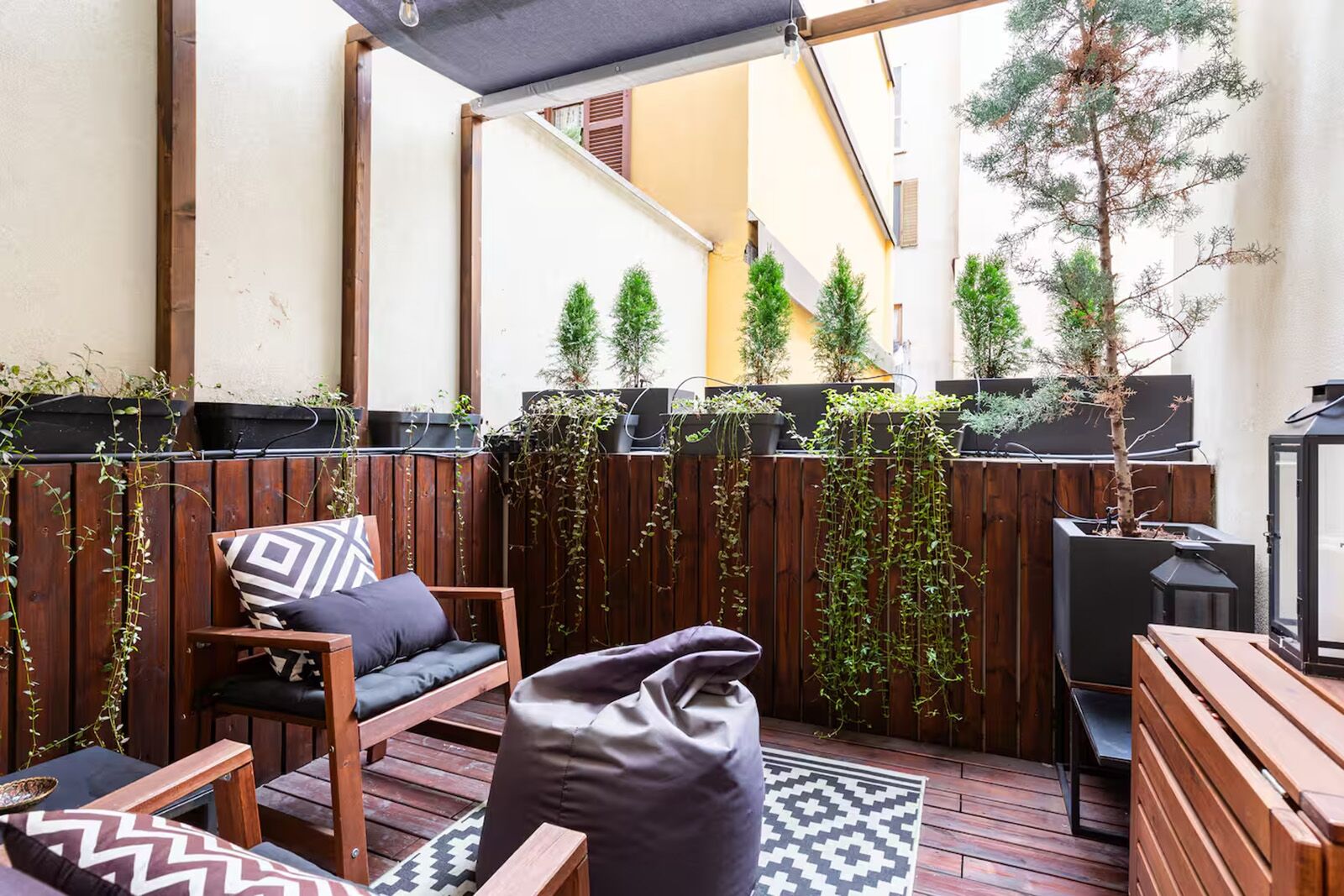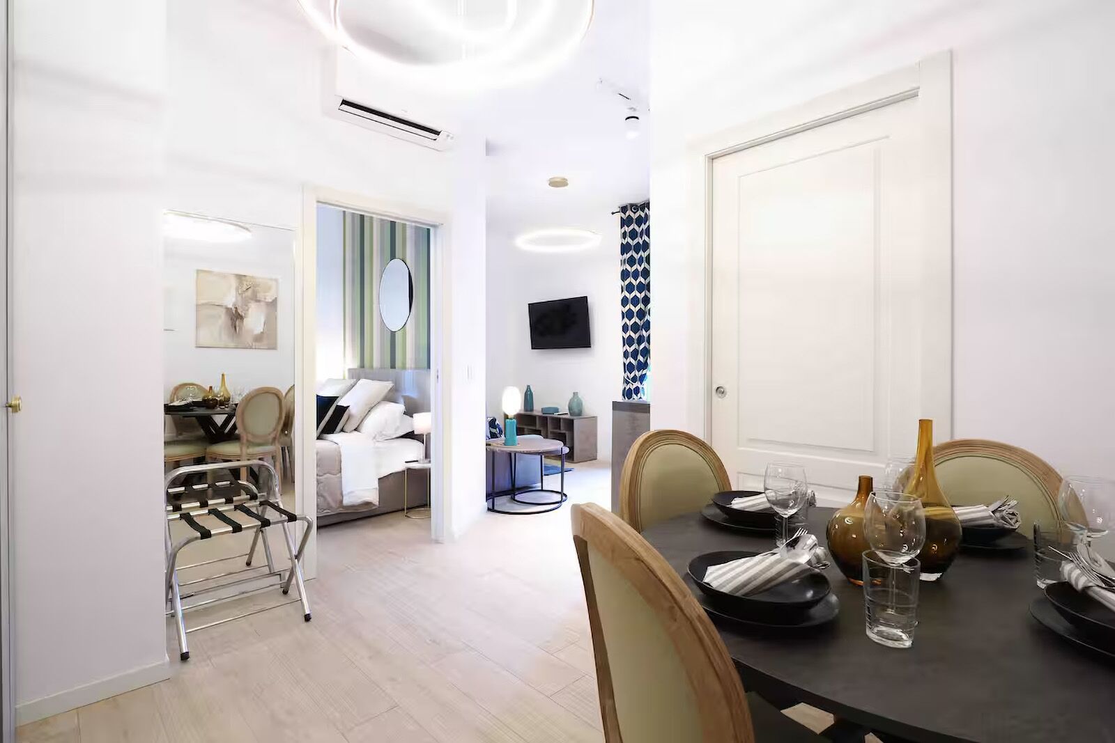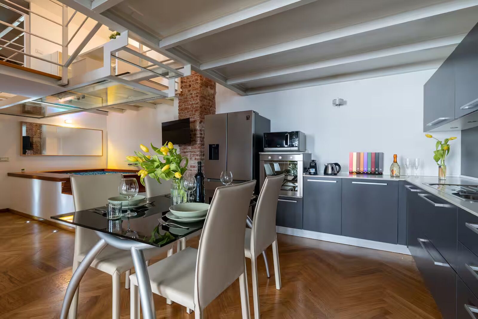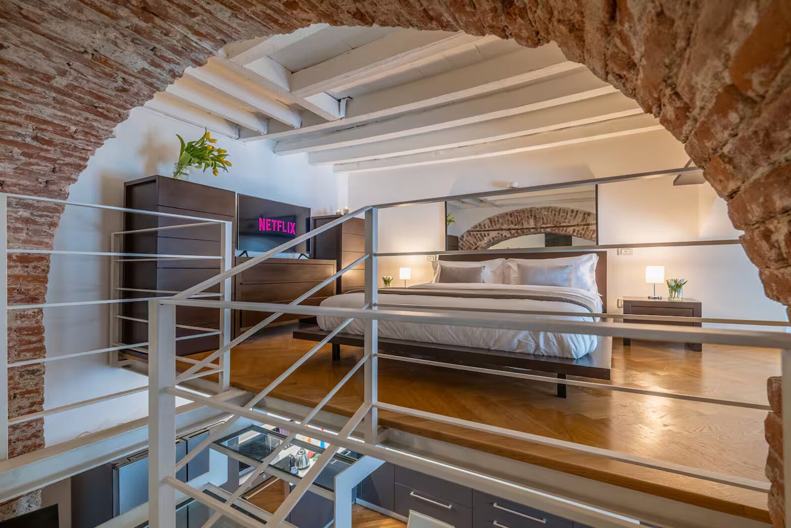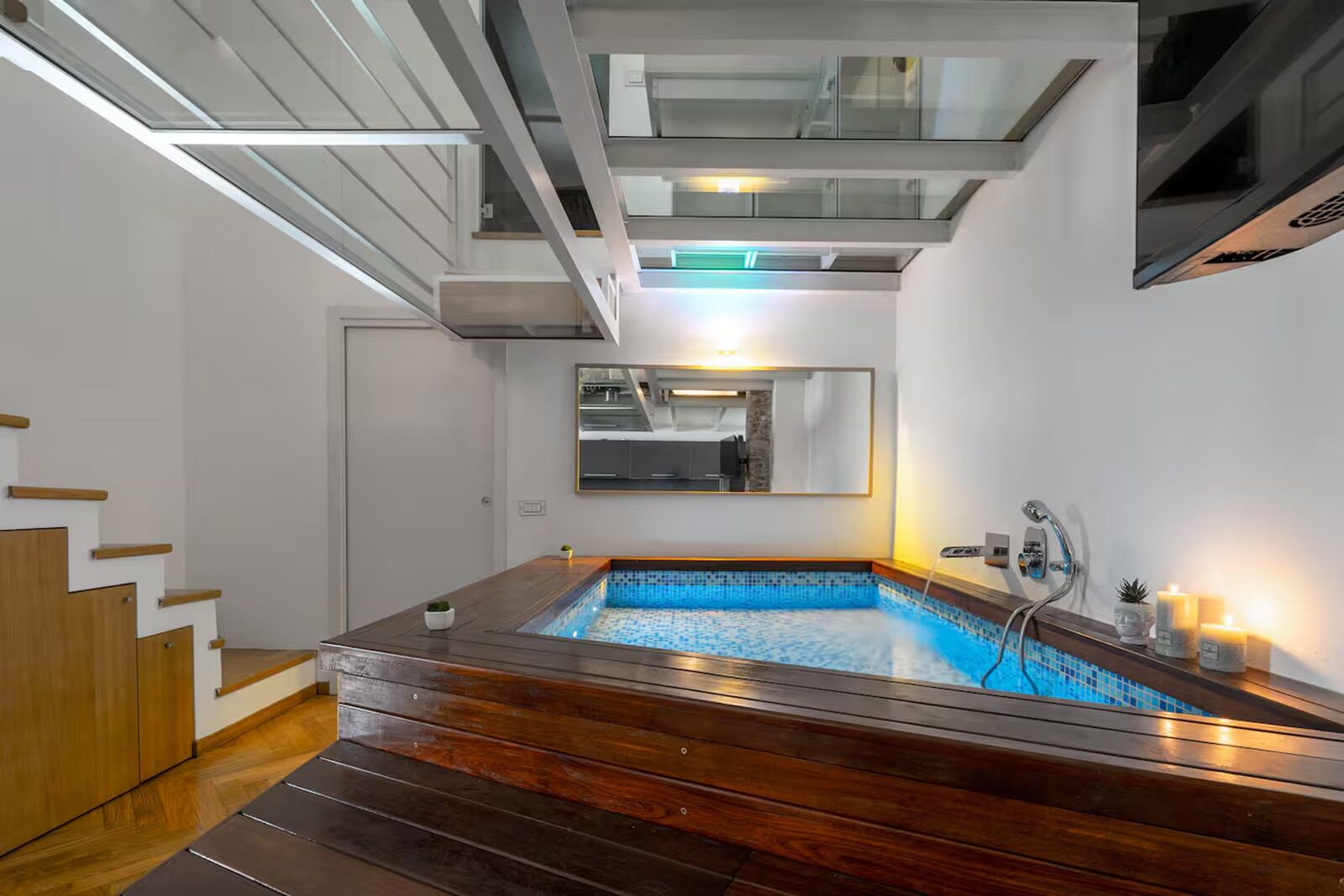 The chicest way to defrost as Milan’s temperatures drop is by plunging into this Airbnb’s private Jacuzzi and streaming the latest games in the cozy lounge. The apartment is located on the first floor of a heritage building near Porta Lodovica, 20 minutes on foot from Piazza del Duomo and the cathedral. Besides the hot tub, the Airbnb has a well-equipped kitchen, a washing machine, and a designated workspace. There’s a sofa bed for additional guests.