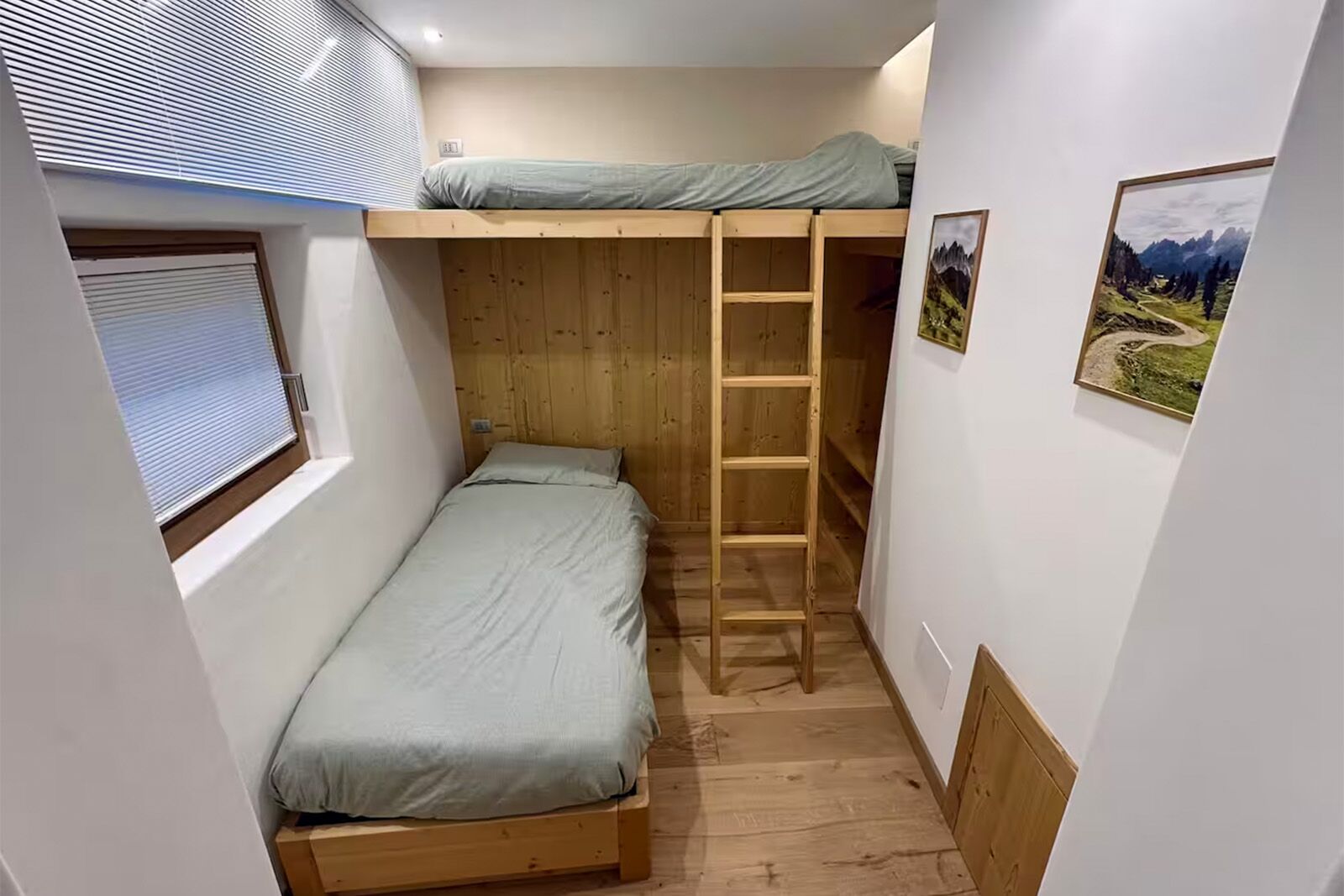 This one-of-a-kind vacation home is inside of a 14th-century building. It opens directly onto Via Roma, where you can mingle over mulled wine with friends new and old. Being spread over several floors makes this rental ideal for families with older kids or teenagers – the second bedroom is a bunk design.