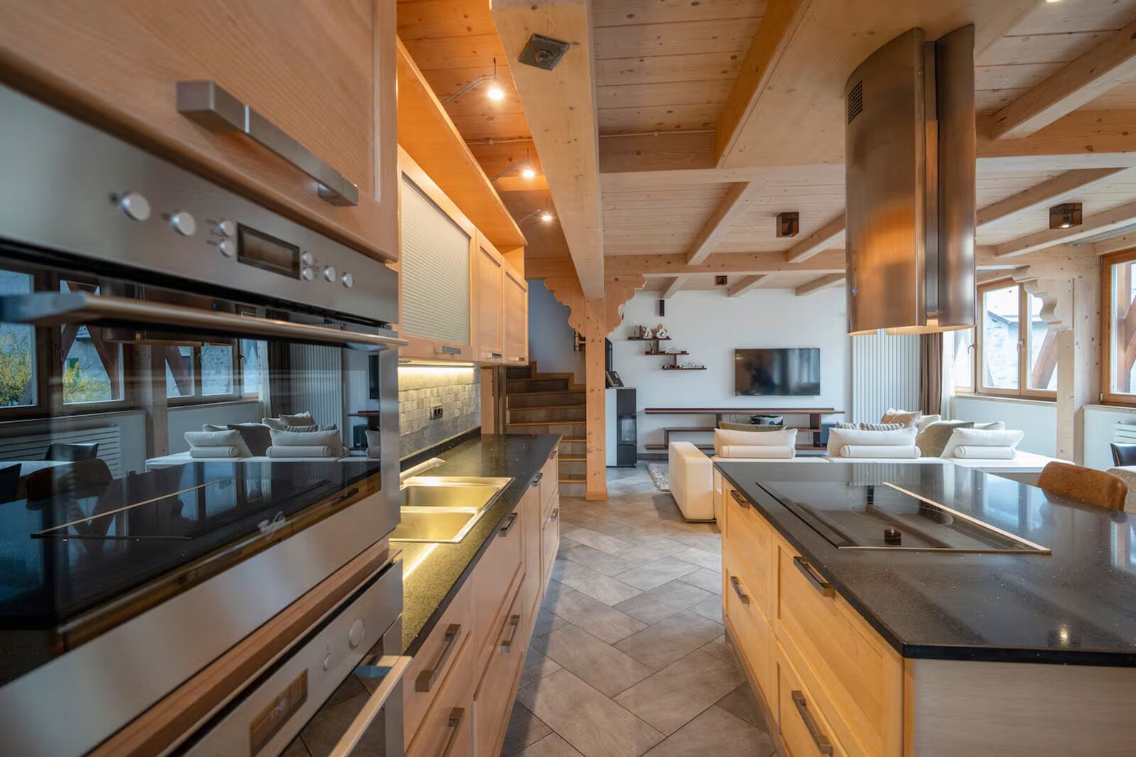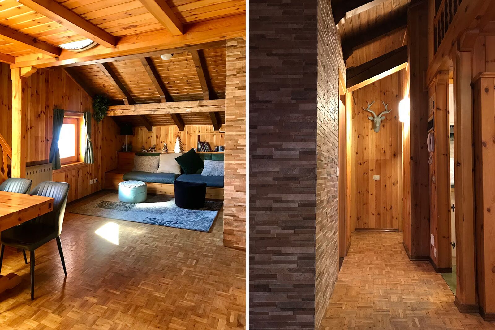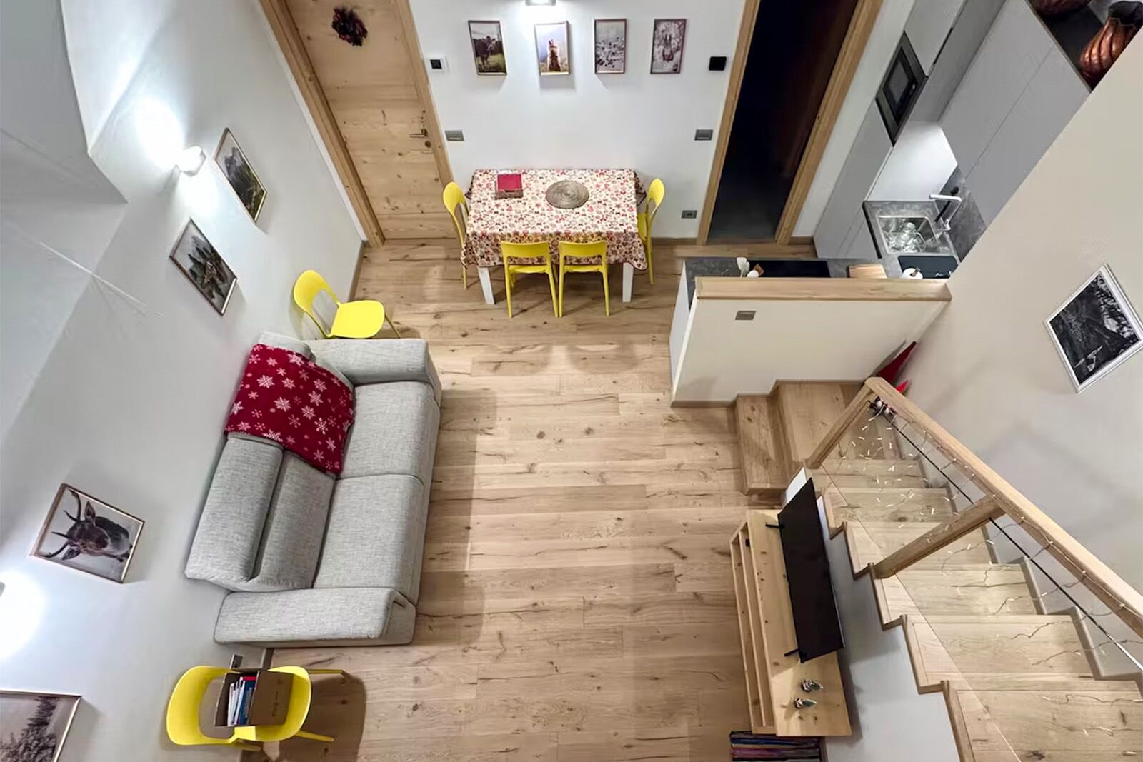 This top-floor apartment in a residential condominium in Livigno, Lombardy, is a short walk from the town center with access to the public buses and use of a heated car parking space. During winter, it carries ski-in/ski-out privileges. The lounge overlooks the cross-country ski field, and there’s a small balcony that catches the afternoon sunshine. Despite being a condo, the woody interiors make the place feel more like a chalet.