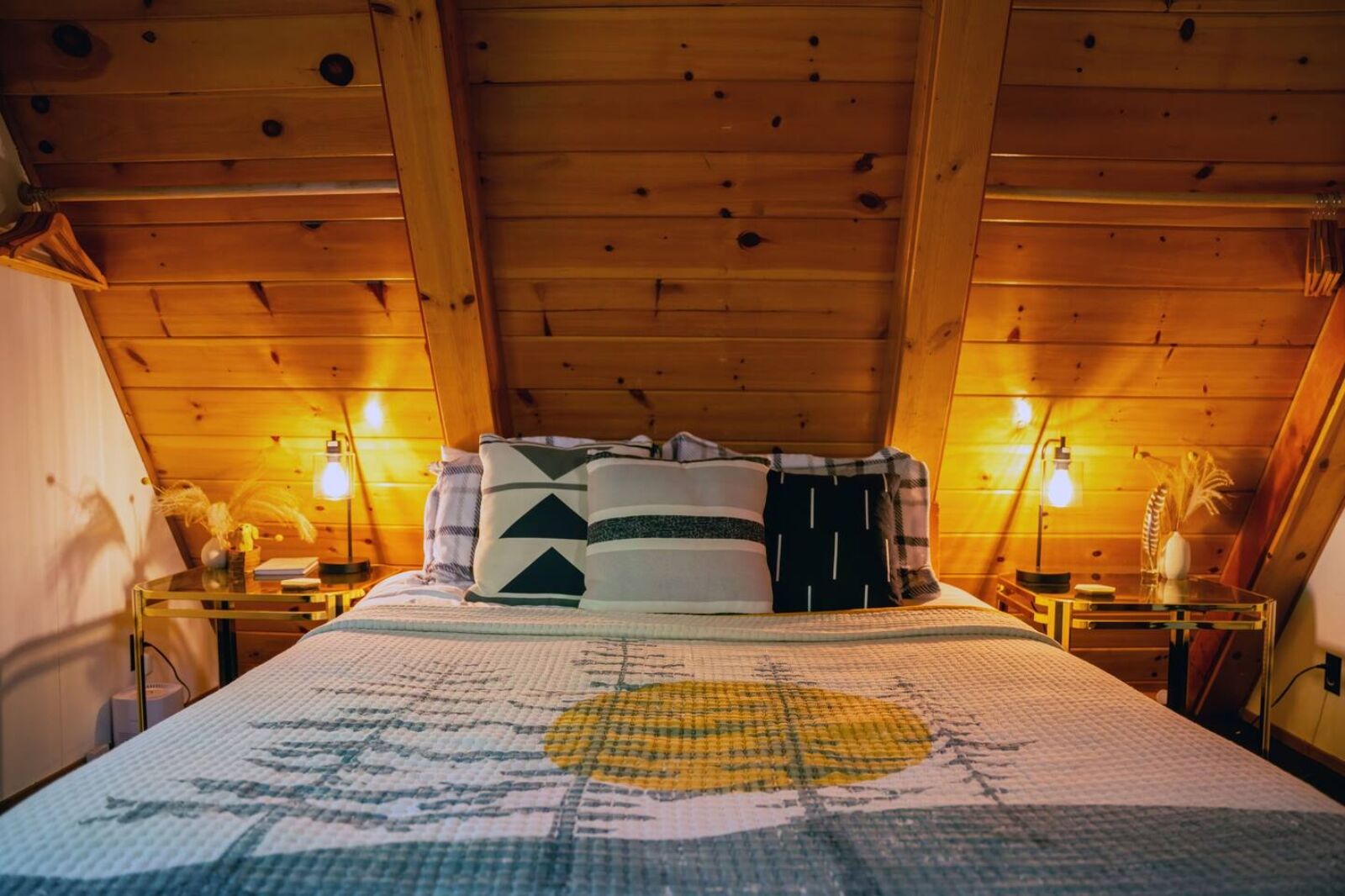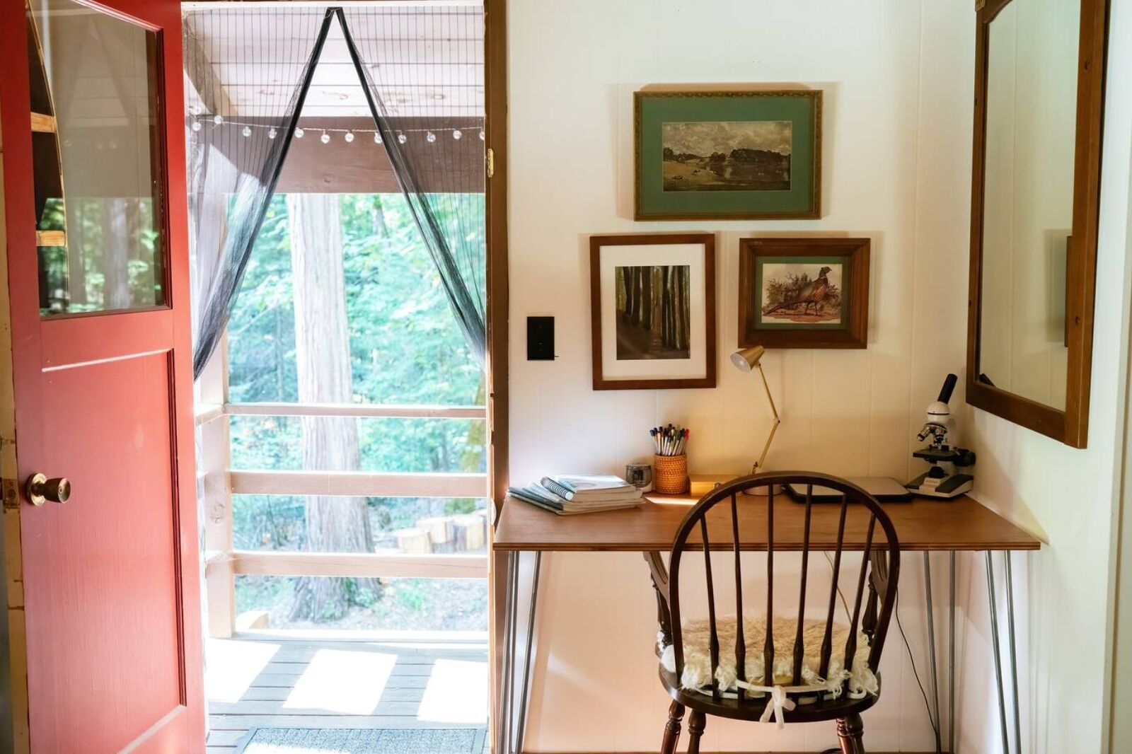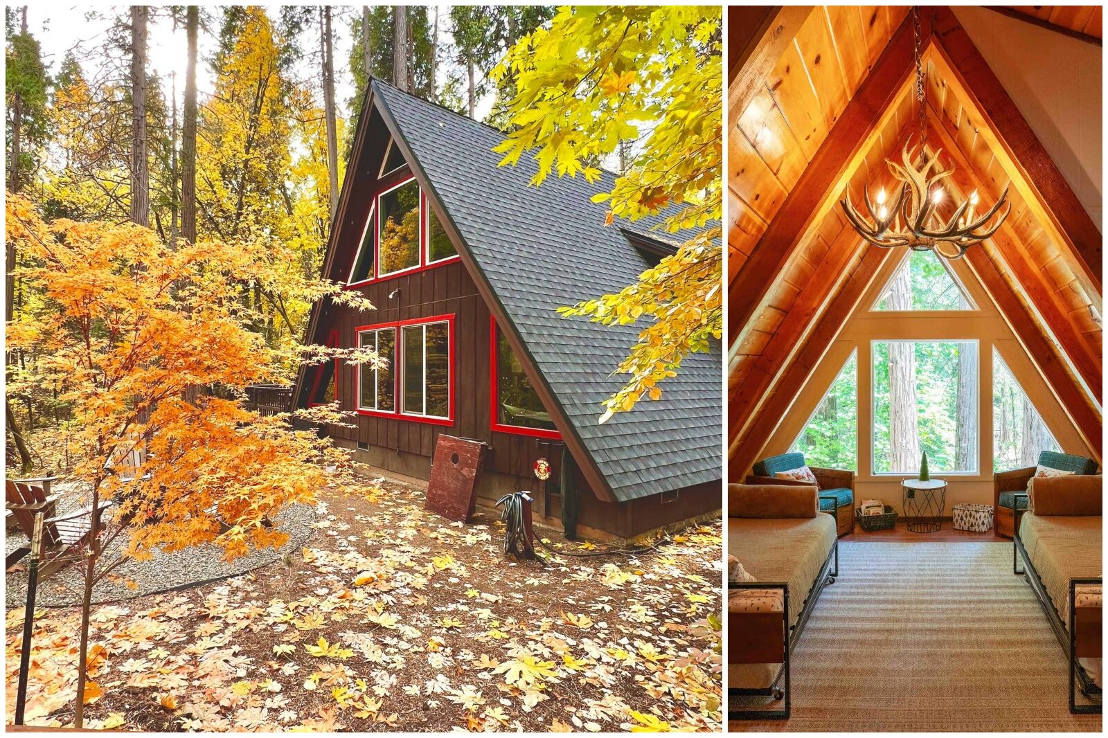 This peaceful A-frame cabin in the Twain Harte mountains has rare private access to a quiet lake surrounded by pines and soaring cedar trees. In the fall, the woods come alive with color and crisp air, and you can follow the sound of the nearby stream down to the water’s edge. It’s cozy inside, with a fireplace, record player, board games, and a reading loft with big windows overlooking the forest — plus a large deck where you can take in the scenery wrapped in a blanket with a warm drink.