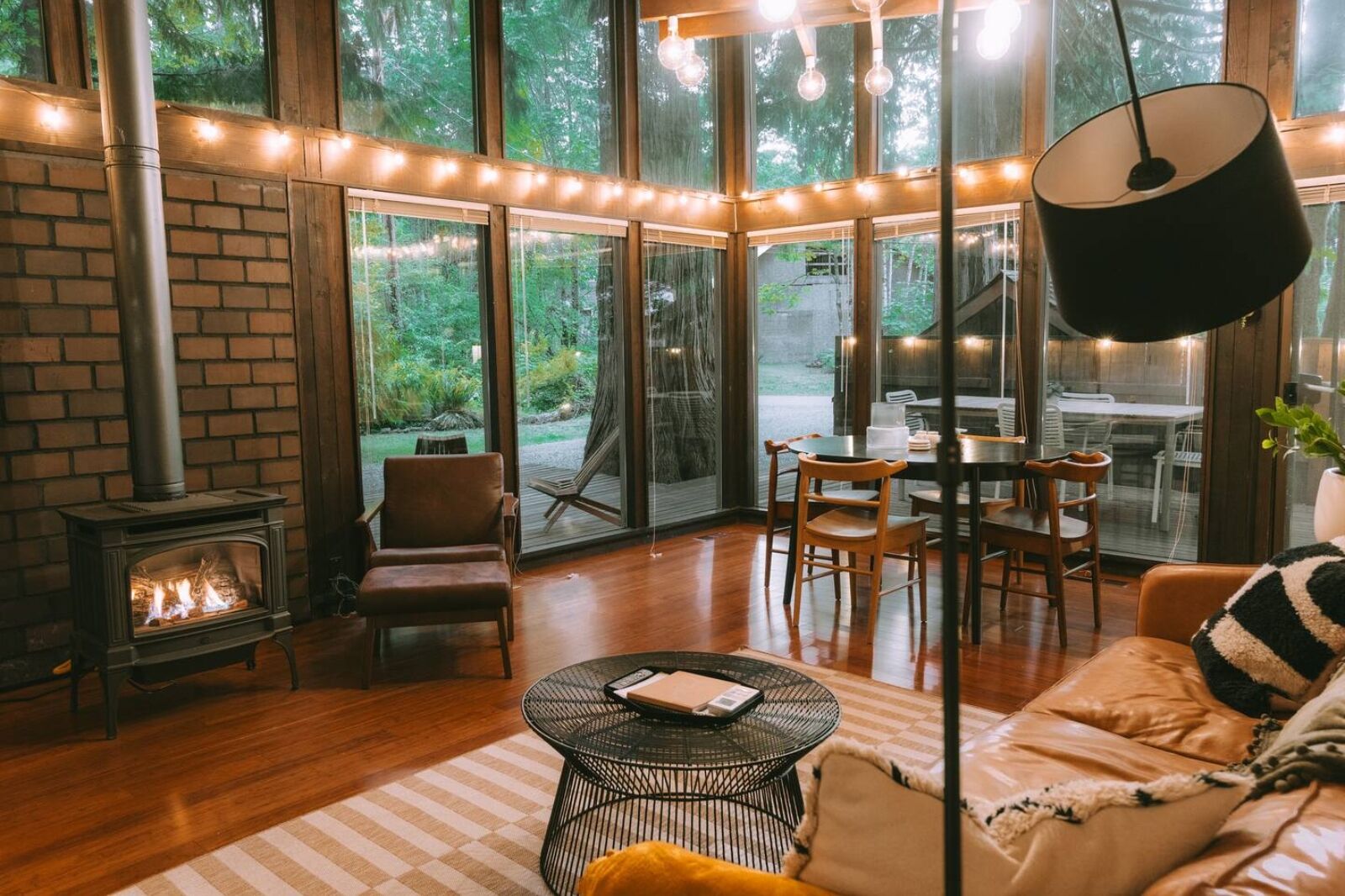 Skykomish and the Cascade Mountains offer a picturesque escape amid fall’s vibrant hues. This cabin sits among evergreens in the small town of Skykomish, just seconds from some of the best hiking spots in the Central Cascades. Centrally located to much of what the Pacific Northwest has to offer, it’s a comfortable retreat with easy access to trailheads and, in winter, the slopes — the property is only 15 miles from Stevens Pass Ski Resort.