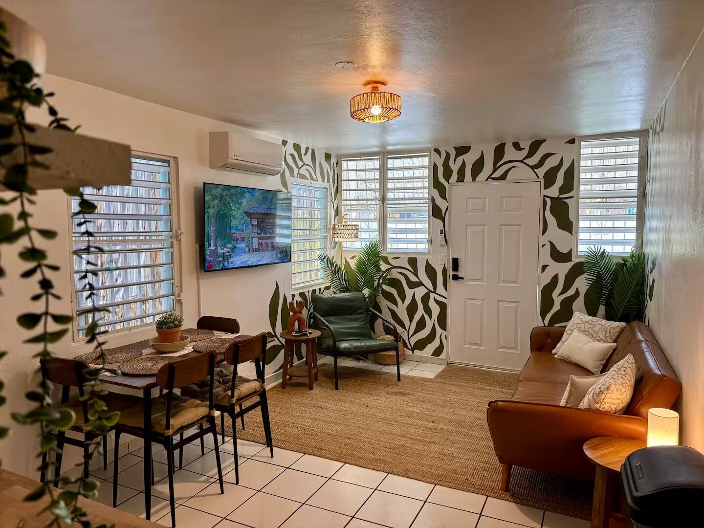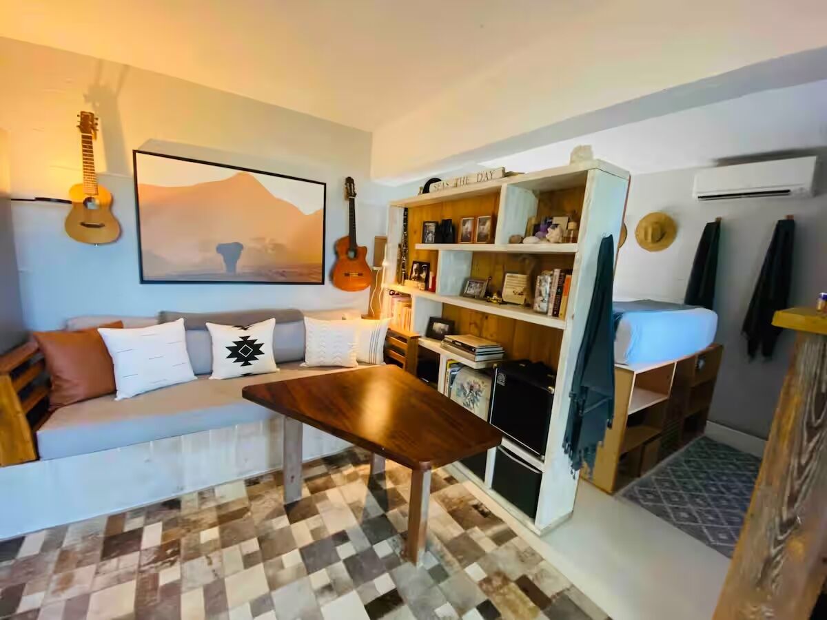 No passport needed and no big budget needed to book this top-rated Airbnb in San Juan, Puerto Rico. The kitchenette (stocked with basic spices and cooking oil) will also help stretch your vacation dollars and you’ll be able to walk to beaches and restaurants. There’s a charming patio with a hammock and a futon in the lounge that accommodates a third guest. Light sleepers are advised to bring ear plugs due to the central location near bars.