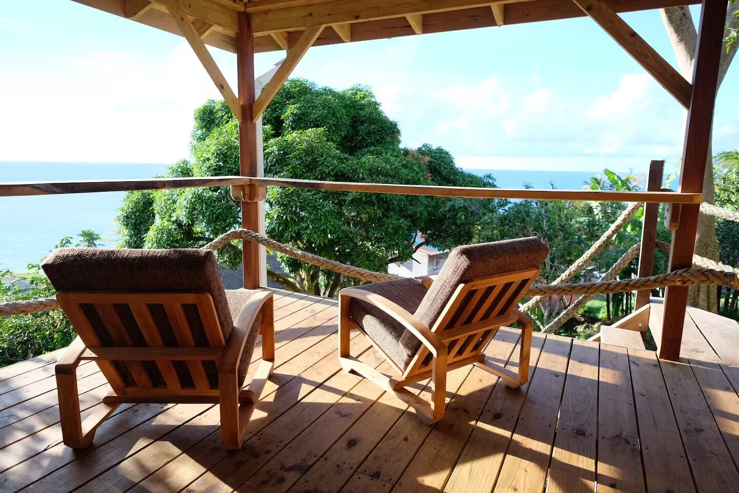 This wooden cabana is set amid a plot of tropical plantations in a dreamy riverside setting. You’ll enjoy al fresco breakfasts on the terrace, surrounded by fragrant fruit trees and Caribbean flora, and the option to cool off in the passing river. Located near La Plaine on the southeastern side of the island, you’ll be able to explore Dominica’s beaches and the Morne Trois Pitons National Park. A rental car is needed to enjoy this remote location.