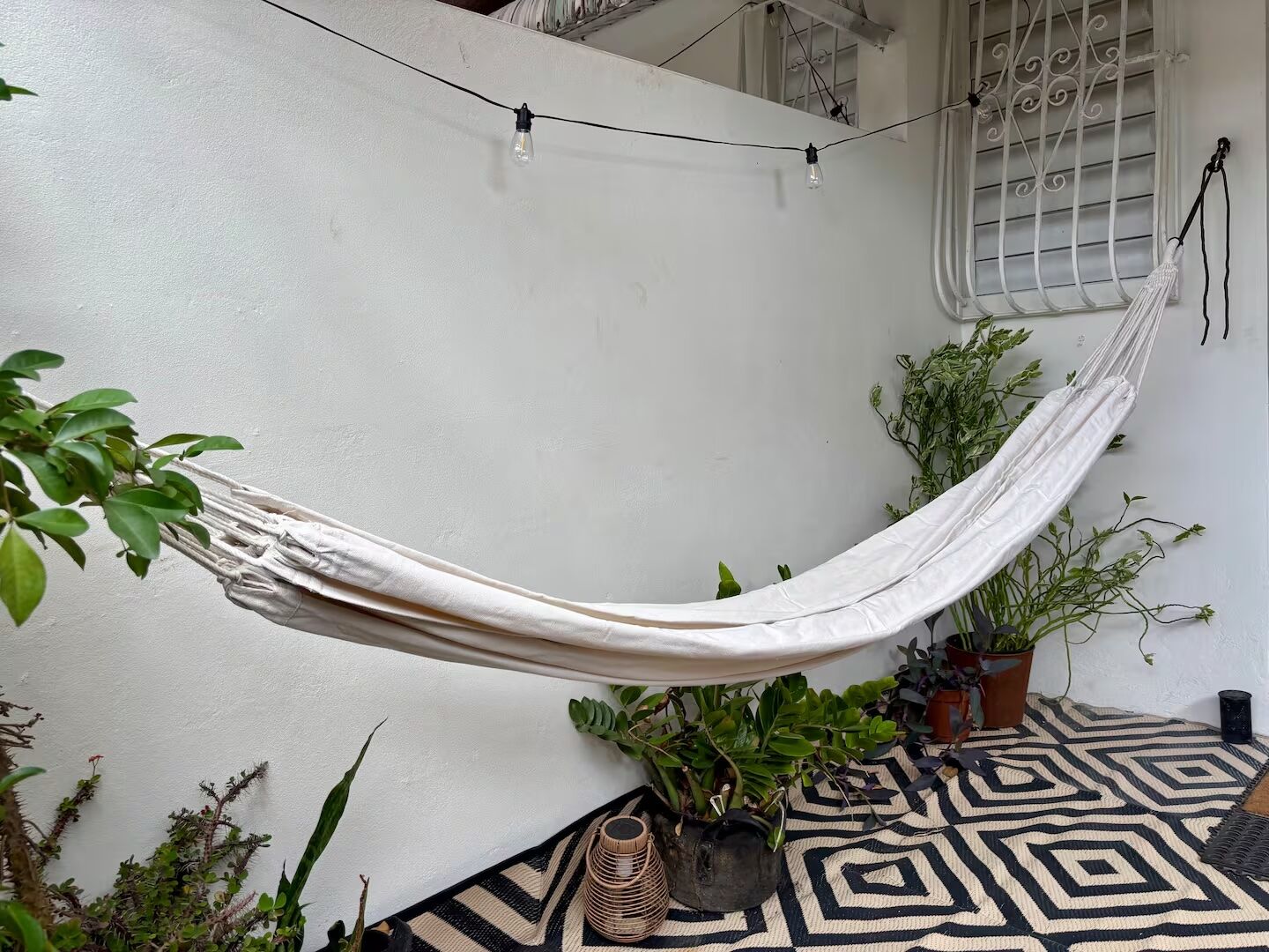 They pretty much had us at “treehouse,” but in case you needed any more convincing to stay in this wee home set 20 feet up in a Flamboyan tree, the thing is pretty much all outdoors, with a cool breeze passing through from the kitchen to the bedroom. The walls in this Puerto Rico Airbnb find are all lined with natural grass, the bed has a veil over it, and there’s even a tire swing in front. Do heed the warnings, though: This treehouse is out in real nature. So there’ll be a symphony of frogs putting you to sleep, roosters waking you up, and neighboring dogs barking the rest of the time.