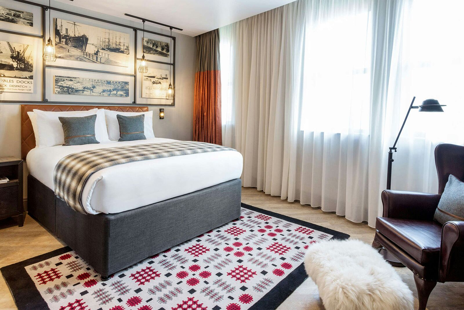 If you’re looking to add some flexibility to your travel plans, using a platform like HotelTonight can help you find discounted last-minute stays at top hotels. Even in a small city such as Cardiff, Wales, there is a decent selection of budget and boutique options. Here are some of the best last-minute hotel deals in Cardiff, close to train stations, nightlife, and attractions. Getting to Cardiff hotels from the airport: Cardiff Airport (CWL) is 16 miles southwest of the city, with a taxi or Uber taking around 30 minutes and costing around $40 on average. The T9 bus service takes you to Cardiff Central Station, from where hotels are either walkable or a short taxi ride. Alternatively, a shuttle bus connects the terminal with Rhoose Cardiff International Airport Train Station, which has links to Cardiff Central. It’s more likely that you will arrive in Cardiff by rail from England, with London, Birmingham, and Manchester being hubs for international travel; trains from London take around two hours. Note that the city has three train stations: Cardiff Central Station, Cardiff Queen Street, and Cardiff Bay.