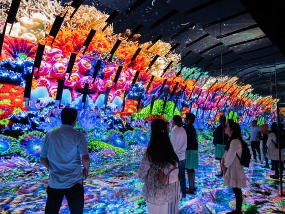 Finally, inside, seek out an exhibit called “The Blue Paradox.” It’s inspired by a journey into the ocean to teach visitors about the scale of plastic pollution. It’s designed with floor-to-ceiling LED screens showing the beauty of everything from vivid coral reefs to swarms of jellyfish, but it’s hard to miss the 1,278 plastic fish hanging overhead. Nearby kiosks let you calculate your personal plastic footprint, with a conveyor belt display that forces visitors to consider their reliance on plastic (and how poor current recycling systems are).