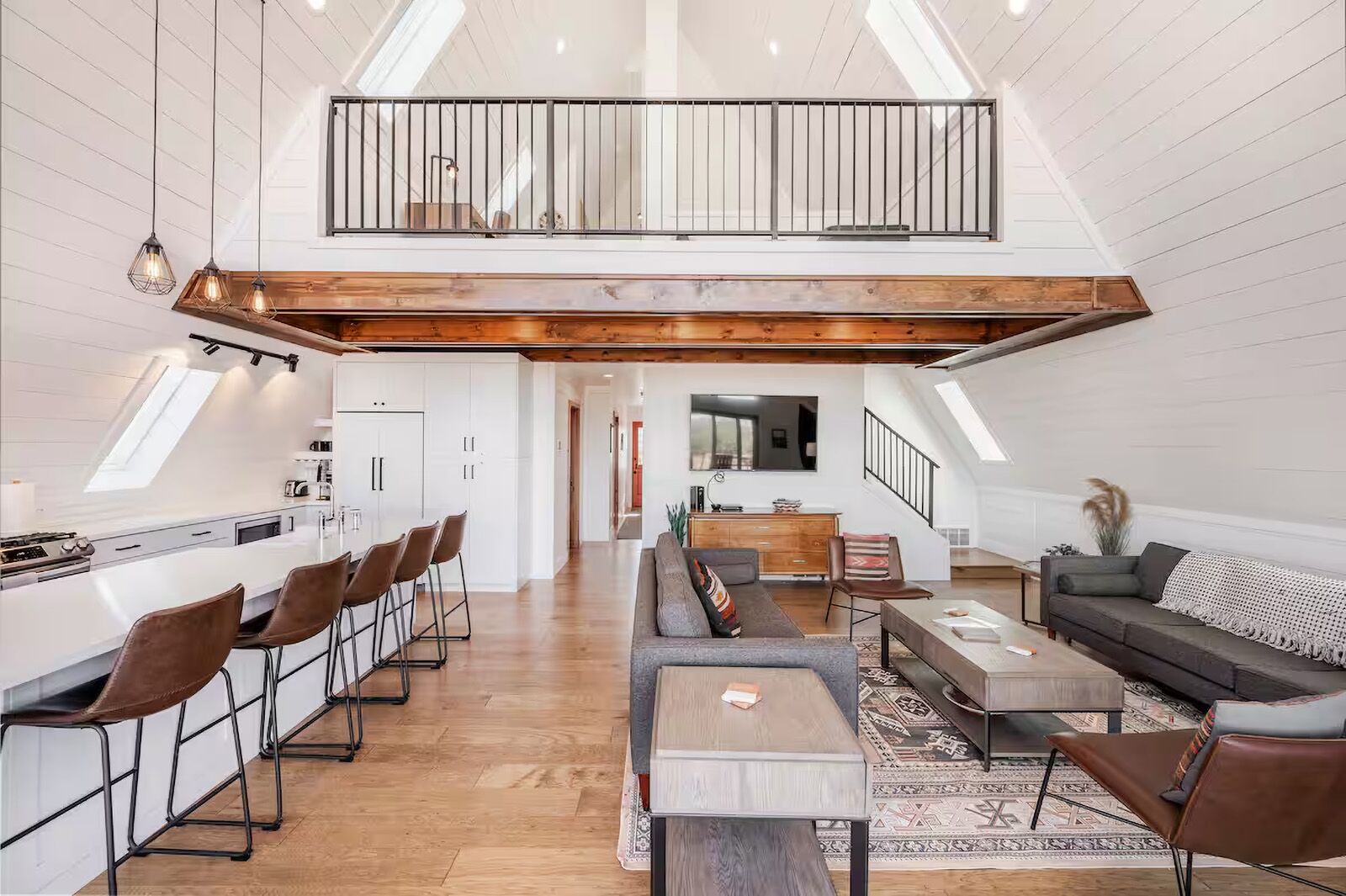 Close to the Timpanogos Cave National Monument – a designated Urban Night Sky Place – this brand-new chalet is only an hour’s drive from Salt Lake City. Spread over three levels, the cabin comprises a complete kitchen, a cozy loft room, and a second lounge in the basement that doubles up as a second bedroom. Keep warm and toasty in the private hot tub while drinking up views of the illuminated sky. But don’t spend all night gazing at the sky: you’ll want your shut-eye before hitting the slopes.