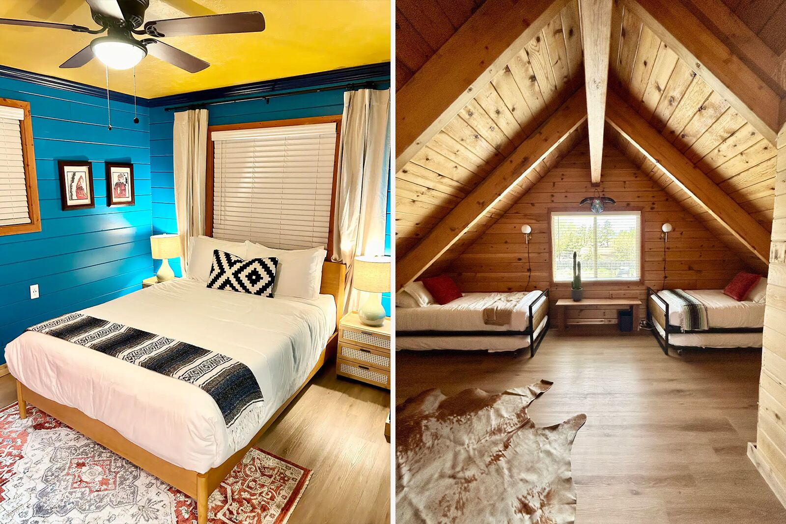 Howdy, partner; this cowboy-style Airbnb on the edge of Cedar City, Utah, is custom-built for outdoor adventure and budding astronomers. It has one double bedroom plus an attic lair accommodating four adults or kids. If you’re bringing the latter, they’ll also appreciate the play area. The cabin is fronted by a covered porch with a dining table offering a view of the night sky — the rural setting means there is minimal light pollution and national monuments are close at hand.