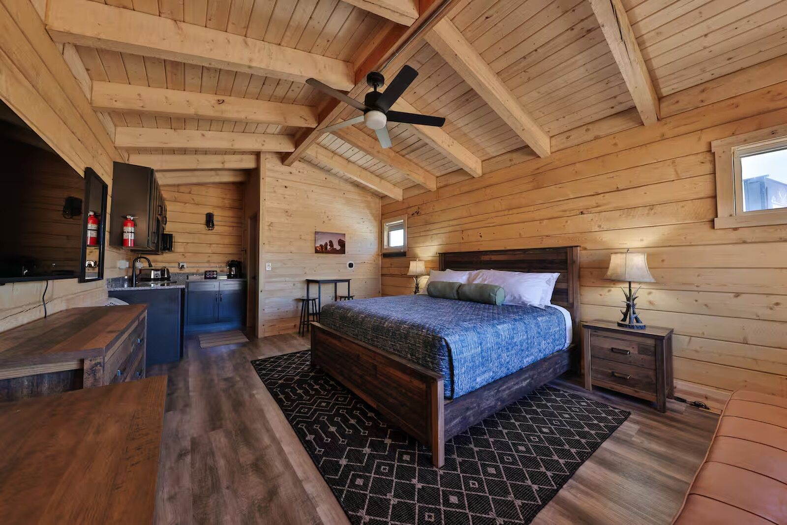 This top-rated cabin rental in Hanksville stands along the route of Utah’s “Mighty Five” national parks. Of those, Capitol Reef is the nearest while the Dark Sky Certified Goblin Valley and Mars Desert Research Station are even closer, with plenty of potential for travelers seeking otherworldly experiences. The cabin is simple yet well-appointed, with meticulous attention to comfort and cleanliness. With a restaurant across the road and quirky attractions on the doorstep, it ticks all the boxes for modern explorers.