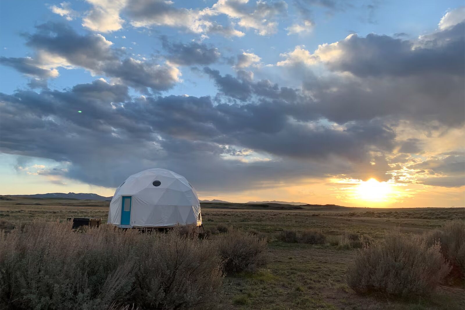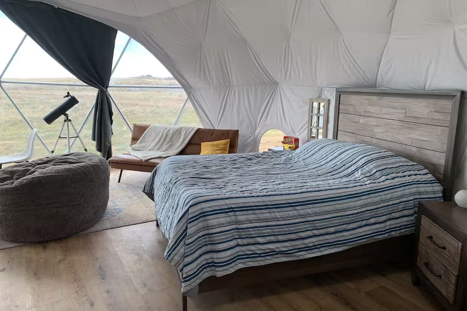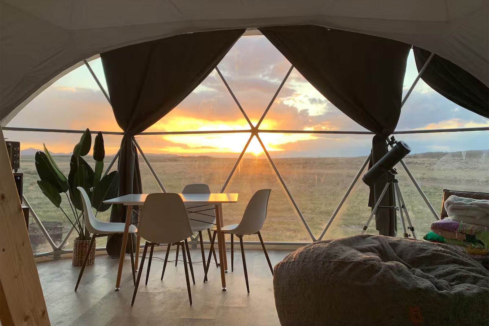 This upscale glamping Airbnb places you in the darkest skies of Eastern Utah. Perched on a bluff on the outskirts of Monticello, the geodesic dome has a private patio with a fire pit for atmospheric star watching. If you forget your thermals, bunker down and get your dose of the cosmos from the bed. This deluxe rental comes with an en suite and is designed to stay cool in the summer and hot in the winter. Dog owners will be over the moon to hear that pups are welcome to share the adventure.
