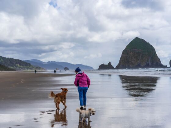 Oregon’s Cannon Beach has a long and picturesque stretch of shoreline where pups can roam off-leash. As long as dogs are under voice control, they’re free to sprint across packed sand, chase waves, and mingle with new four-legged friends. It’s not unusual to see joyful chaos unfold as one dog starts zoomies and a half-dozen others decide to join in.