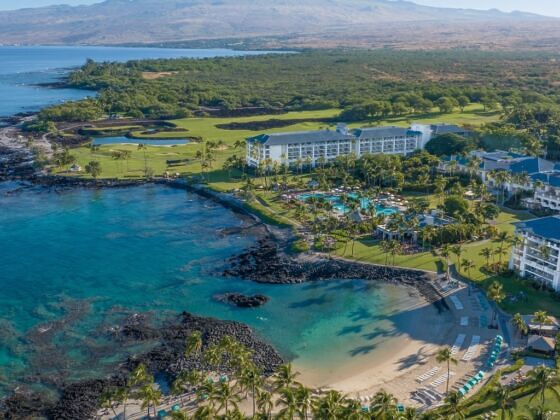 Reaching the resort takes about 30 minutes from Ellison Onizuka Kona International Airport (KOA) takes about 30 minutes by ride share or via the resort’s shuttle. Once onsite you’ll stay in one of 540 newly refreshed guest rooms and suites, categorized by view: garden, partial ocean, ocean, and oceanfront. Accommodations also include the exclusive Fairmont Gold floor, which offers enhanced amenities and lounge access, as well as one-bedroom, luxury, and presidential suites.