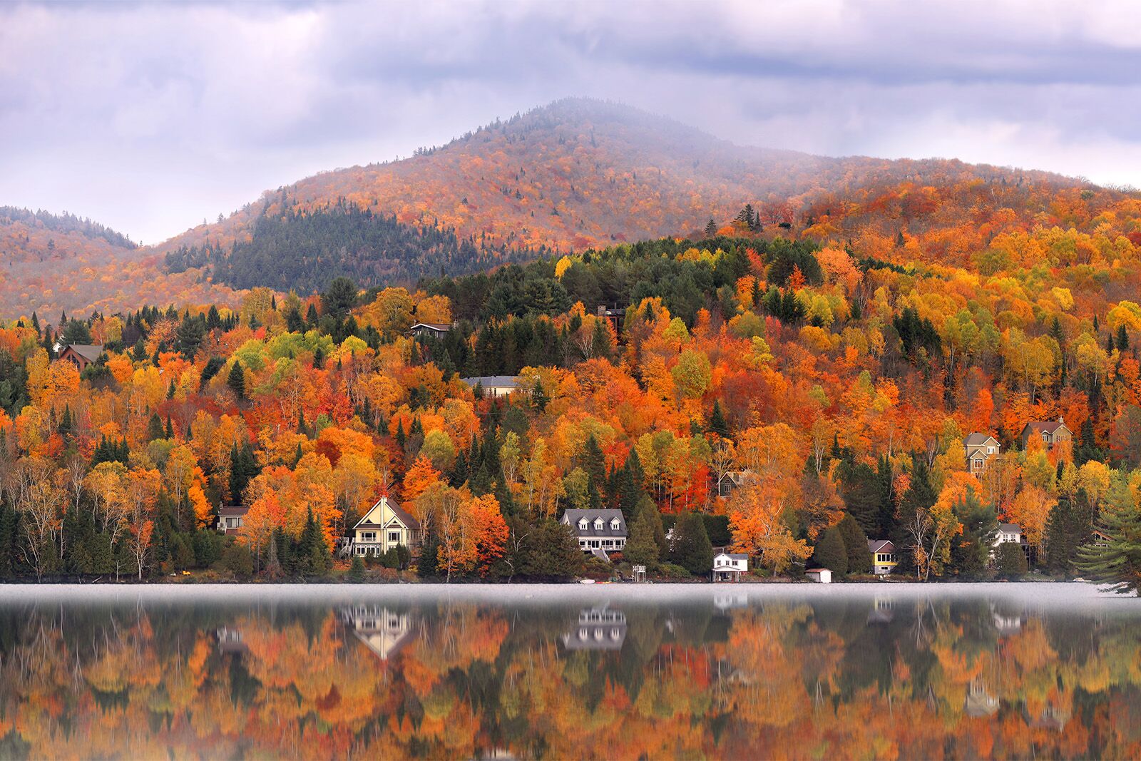 North of Montreal, the Laurentian Mountains erupt in layered tones of scarlet maple, golden birch, and amber beech each fall. Mont-Tremblant National Park offers striking views from peaks that rise above 3,000 feet elevation and lakes like Lac Monroe and Lac Tremblant. The recently opened Sentier des Cimes treetop walkway ends in a 131-foot observation tower above the canopy. Farther afield, Hautes-Gorges-de-la-Rivière-Malbaie National Park offers kayaking along sheer cliffs and hiking to viewpoints overlooking the Malbaie River valley. Towns such as Mont-Tremblant, Saint-Sauveur, and Saint-Donat serve as lively gateways for hikers, cyclists, and paddlers.