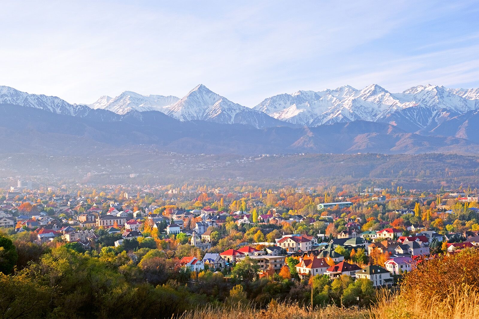 Almaty offers a long autumn season, with colors appearing first in the surrounding mountains and later in the city’s parks. Kok-Tobe Hill, reached by a mile-long cable car, provides views of the skyline framed by snowed peaks. South of the city, Big Almaty Lake’s turquoise waters contrast with the golden foliage in Ile-Alatau National Park. Near the Kyrgyztan border, Kolsai Lakes National Park links three alpine lakes through hiking trails lined with birch and aspen. About three hours east, Charyn Canyon — sometimes called a “little brother” of the Grand Canyon — becomes especially striking in fall when ribbons of yellow elm and willow trees trace the Charyn River between towering red sandstone walls.
