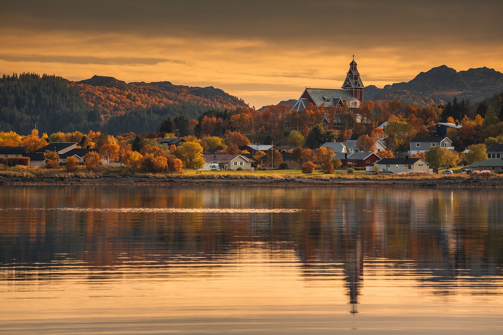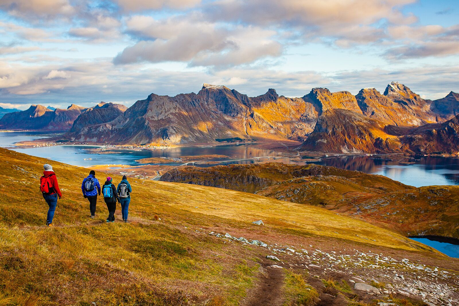 The Lofoten Islands’ jagged peaks and fjords become even more photogenic in autumn. Golden birch and muted reds cover the slopes, while clear skies bring a stronger chance of seeing the northern lights. Traditional red fishing cabins (rorbu) in villages like Hamnøy and Reine contrast vividly with the season’s colors for vivid shoreline shots. Lofoten has no shortage of great hiking. Hiking trails such as Ryten or the path above Haukland Beach reward visitors with panoramic views across beaches and mountains glowing in low Arctic light.