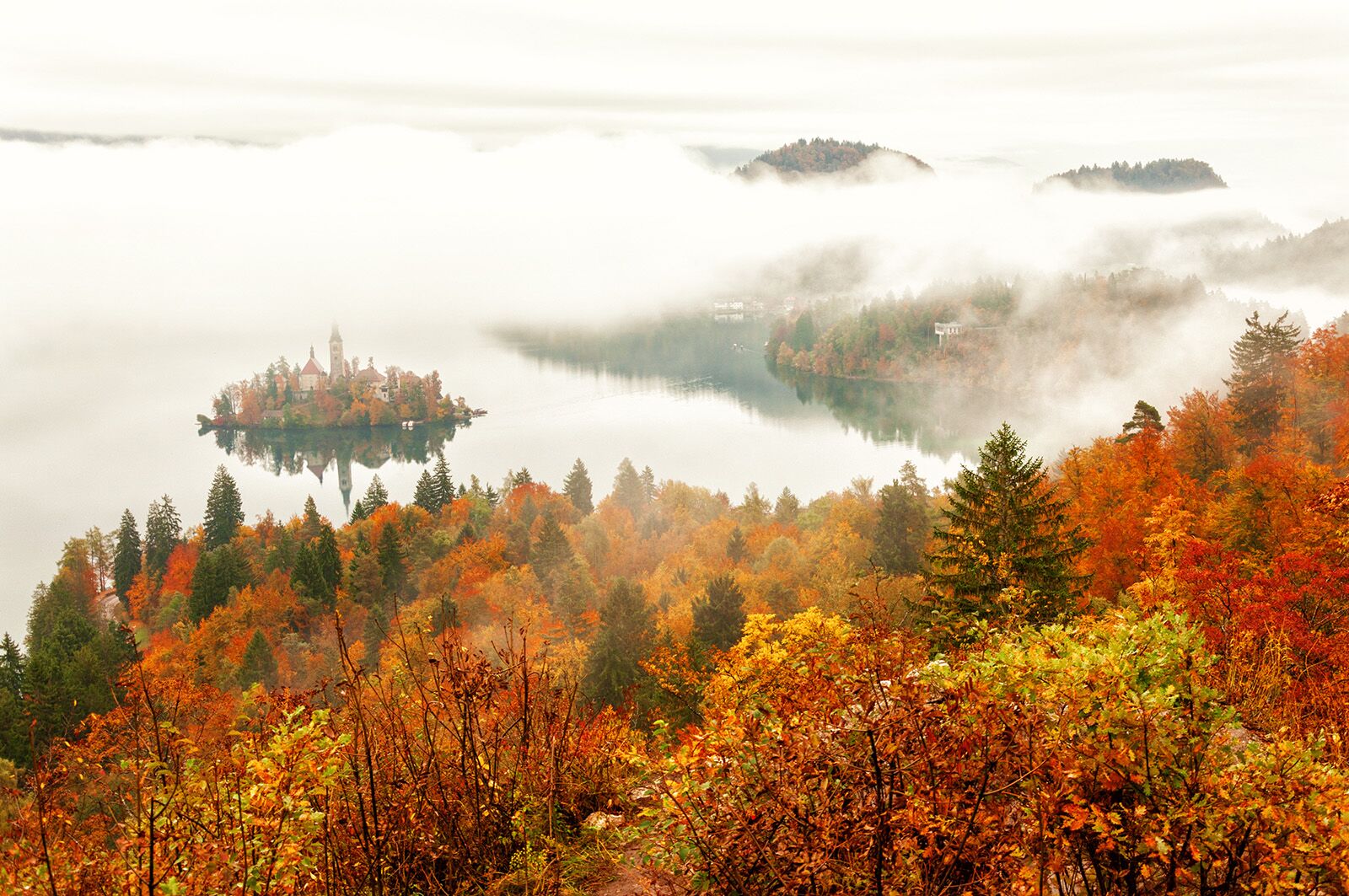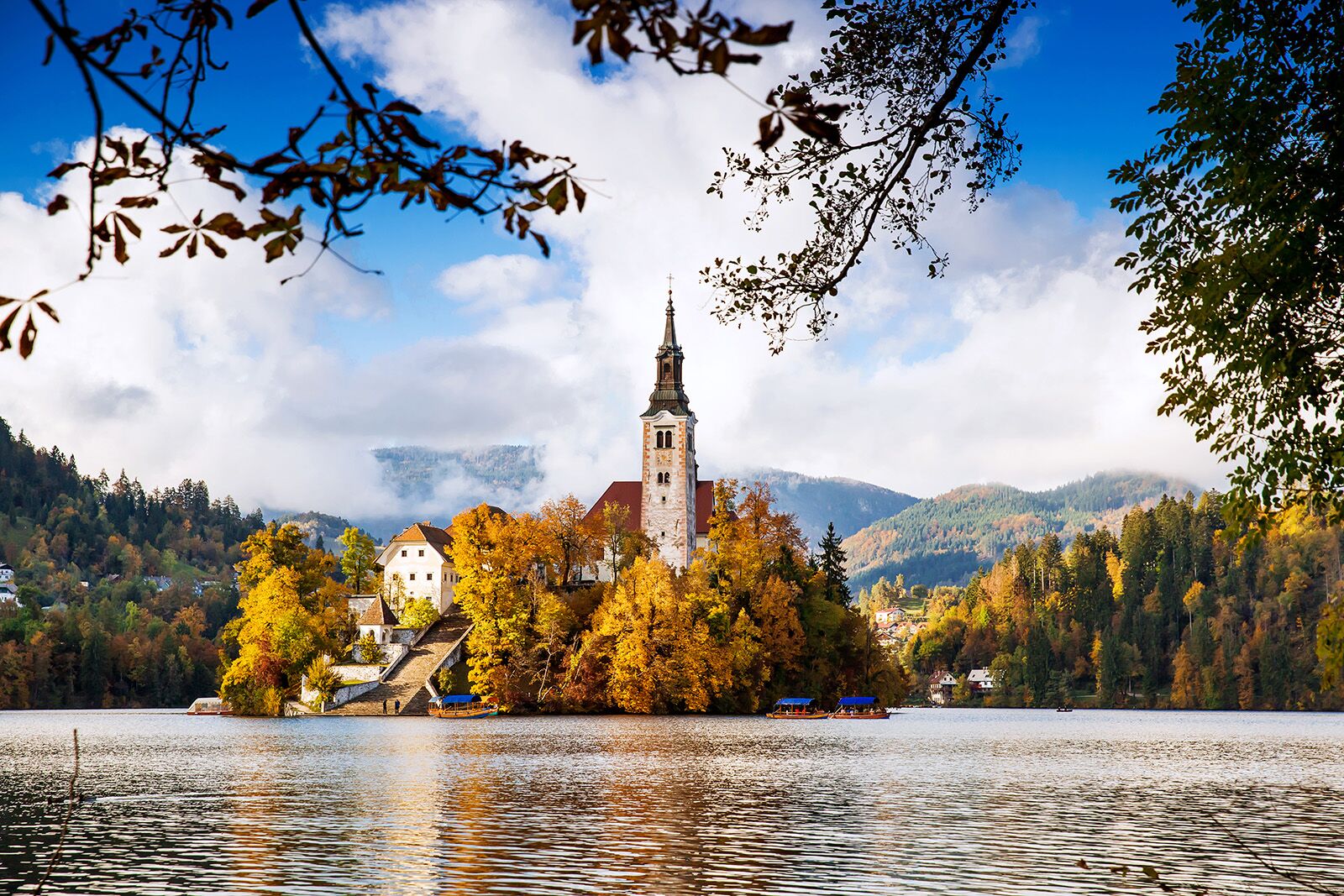 In autumn, Lake Bled’s mirror-like waters reflect maples, beeches, and chestnuts turning bronze against the Julian Alps. The iconic island church and cliff-top Bled Castle gain a softer glow, while hiking trails like Ojstrica and Mala Osojnica provide elevated perspectives of the lake in full color. An hour from Ljubljana, Bled is the starting point for Triglav National Park, where Slovenia’s alpine heritage and fall landscapes extend into higher ridges.