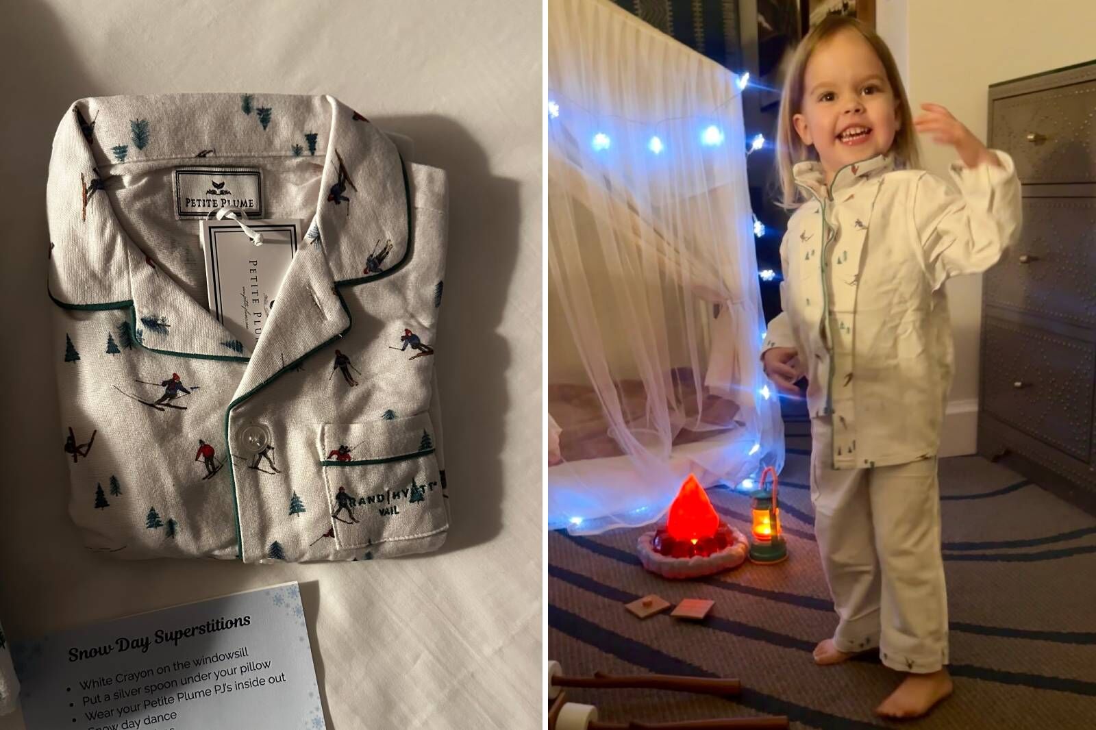 In the last week of February, my 3-year-old daughter Margot and I went to the Grand Hyatt Vail for its Snow Day Superstitions package. It covers a range of snow-summoning lore: pajamas worn inside out, a silver spoon under a pillow, ice cubes flushed down the toilet, a snow day dance, and a white crayon on the windowsill.