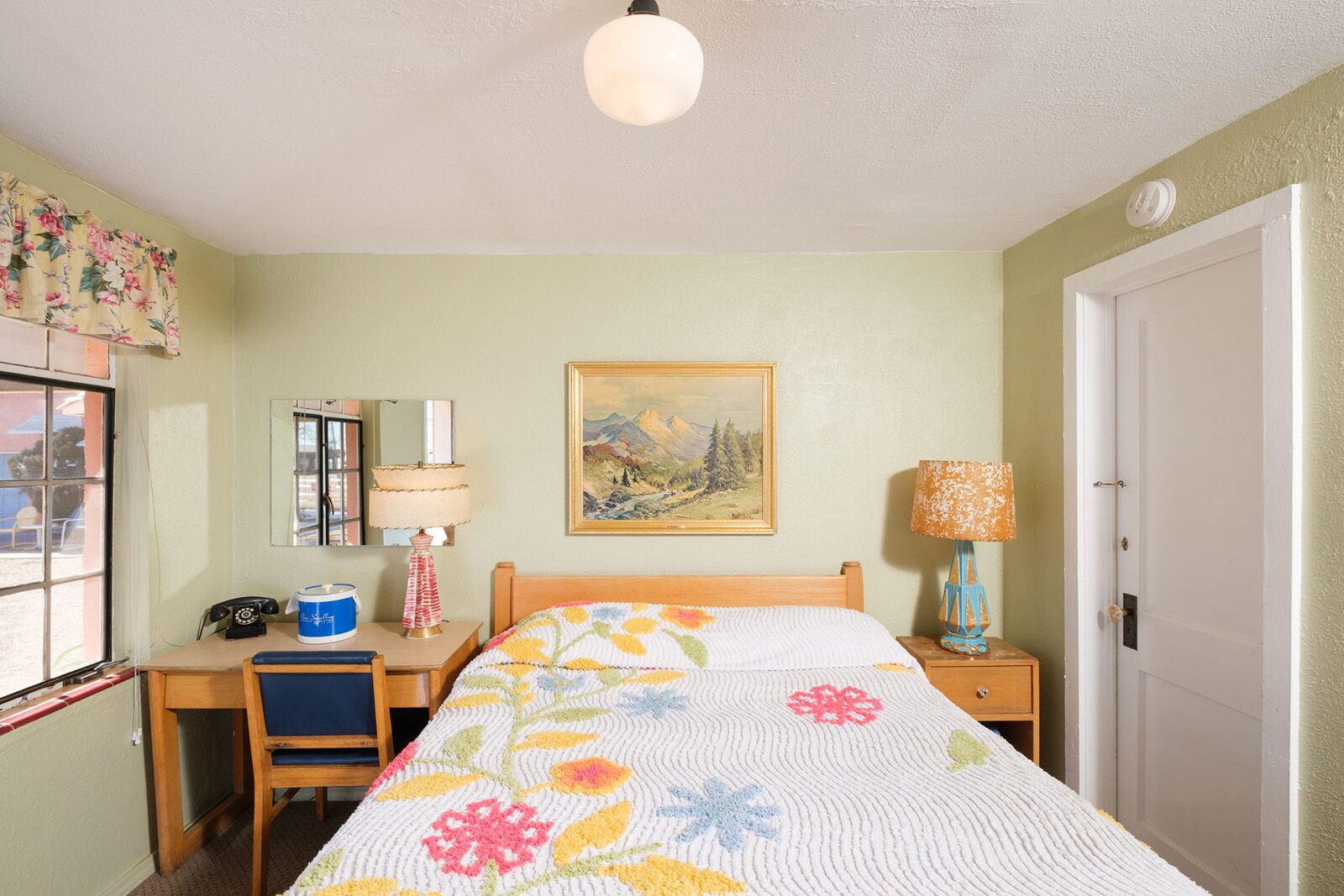 While many small-town hotels buckled as Interstate 40 absorbed the flow of motorists, the Blue Swallow was one of the few that never closed. A stream of new owners carried out extensive renovations while maintaining its charm and continuing to welcome guests like family. Most of the 12 rooms have a private garage where you can park your hot rod before kicking back with a cold one in the neon-lit courtyard. The gift store stocks a commemorative coin for the centennial.