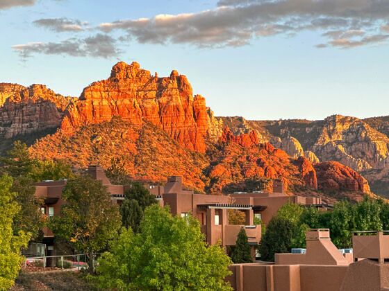 Perched on a hill above The Y — the roundabout junction where Highways 179 and 89A meet — this Hyatt Vacation Club looks straight out of a postcard, with its desert-stucco studios and one- and two-bedroom villas cascading down the hillside. A winding drive leads up from the busy roundabout to the welcoming lobby, where staff greet you with a smile and plenty of local insight to help you make the most of your time in Sedona.