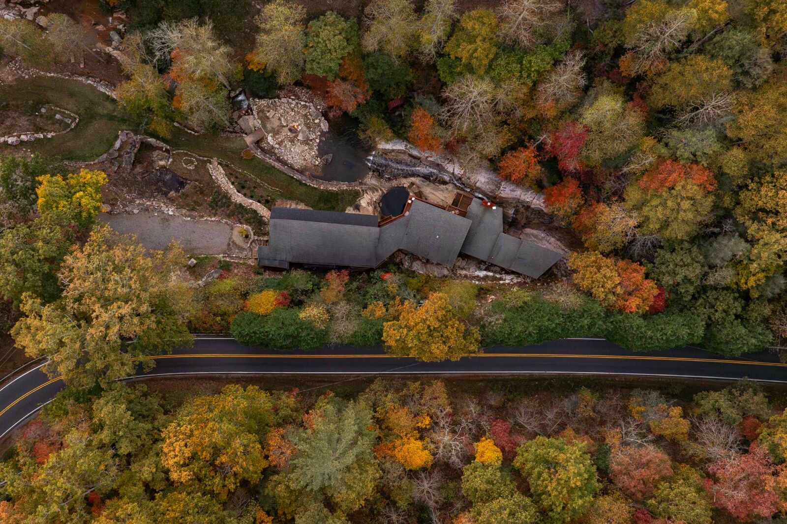 This region of the US is one of the best places in the country for leaf peeping, with elevations that stagger the color change over several weeks. In October, the slopes around the house shift to red, orange, and yellow as the hardwoods in the Nantahala National Forest turn.
