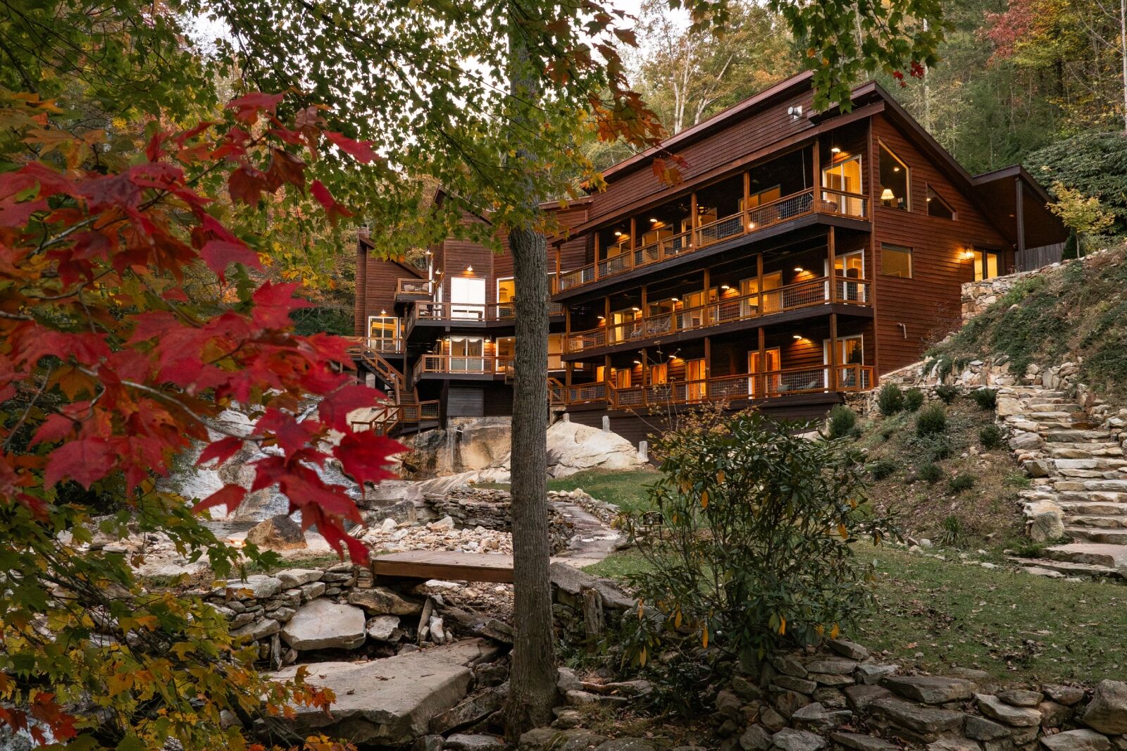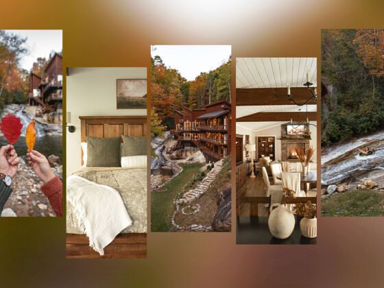 On a forested slope in the Nantahala National Forest, just outside Franklin, North Carolina, a five-bedroom mountain retreat sits so close to its own 60-foot waterfall that the decks catch its spray. The drop ends in a granite pool — and, if you’re game, the rock is slick enough to slide. The four-season retreat is bookable on Airbnb for groups of up to 20 but it makes an especially stunning escape in the fall.