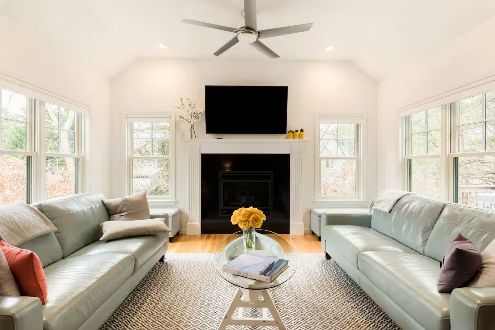 Chic Cape style in calming beachy colors will make your stay at this large group rental a quintessential beach vacation. A short walk to your private beach playground for a day of fun in the sun, the rental is situated near downtown Hyannis where you will find wonderful restaurants, the Kennedy Museum, and the Hy-Line ferry for a day trip to Martha’s Vineyard.