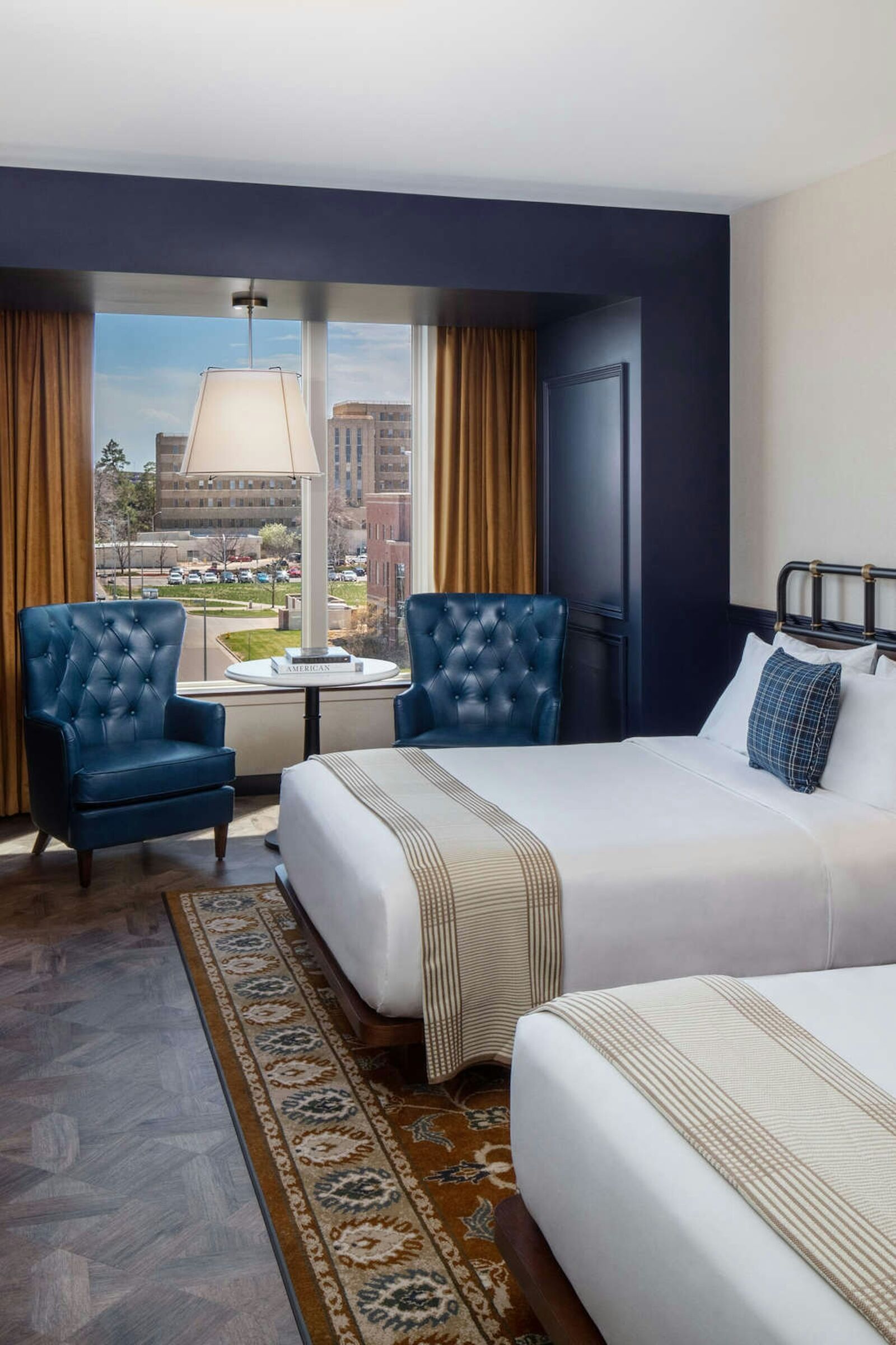 The hotel features two high-end on-site restaurants ()the rooftop Stellar Jay, which specializes in shared plates and cocktails) and the ground-level Pasque, which offers a destination-worthy menu of responsibly-sourced dishes. There’s also a great onsite coffeeshop and the second floor is effectively a coworking space, with beautiful views and inspiring literature on-hand. The architecture is inspired by Colorado’s aspen forest, hence the unforgettable facade.