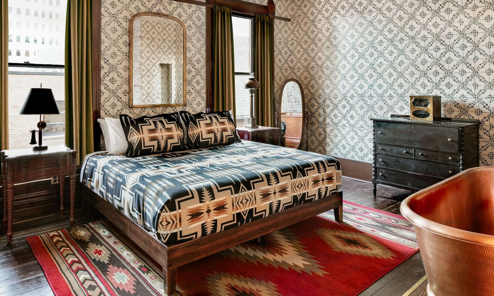 On-site you’ll find the hotel’s own bar/restaurant space (the public house concept) and the boutique atmosphere is a major draw. Guests like the unique design (copper bathtubs, western-inspired décor), and personalized feel