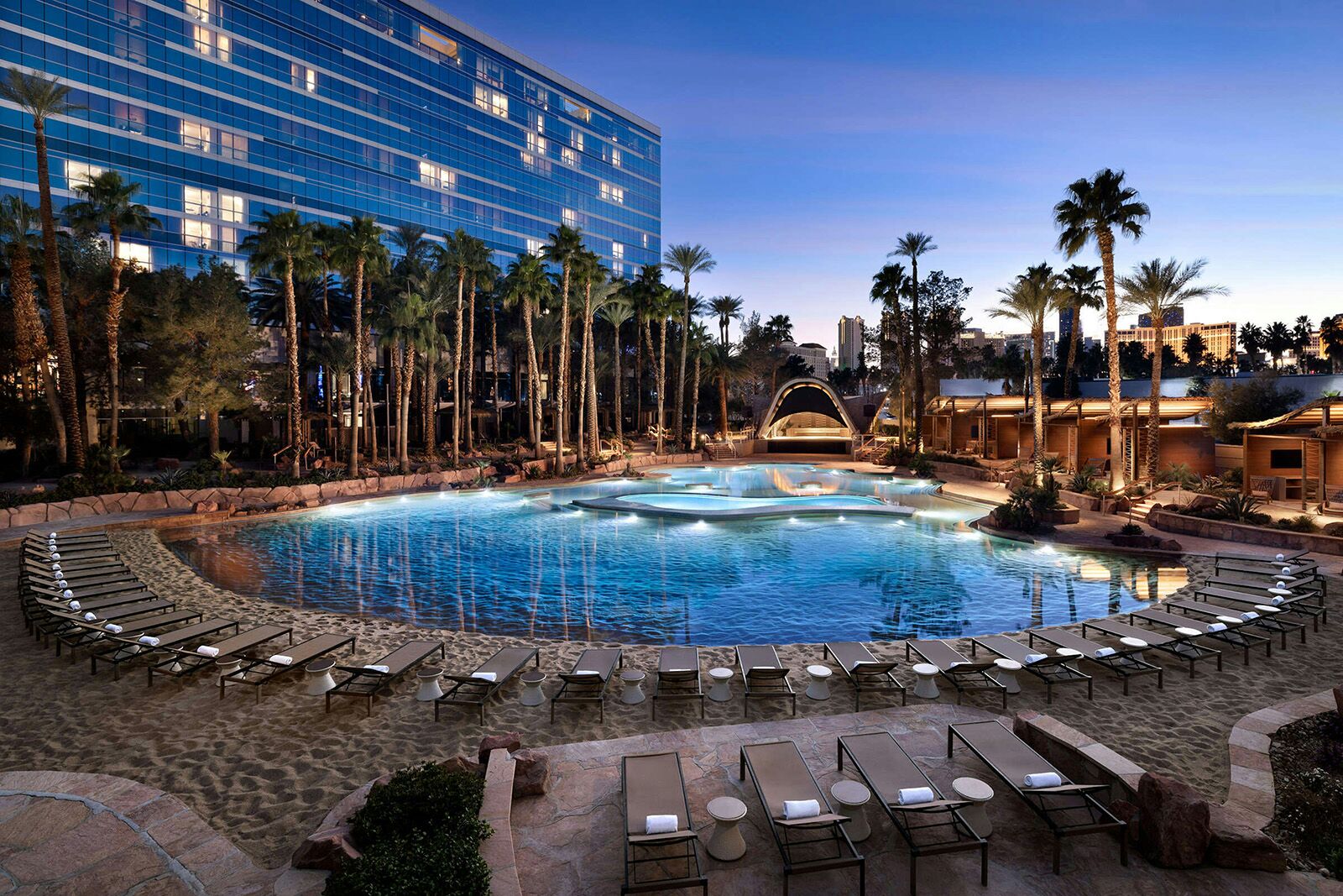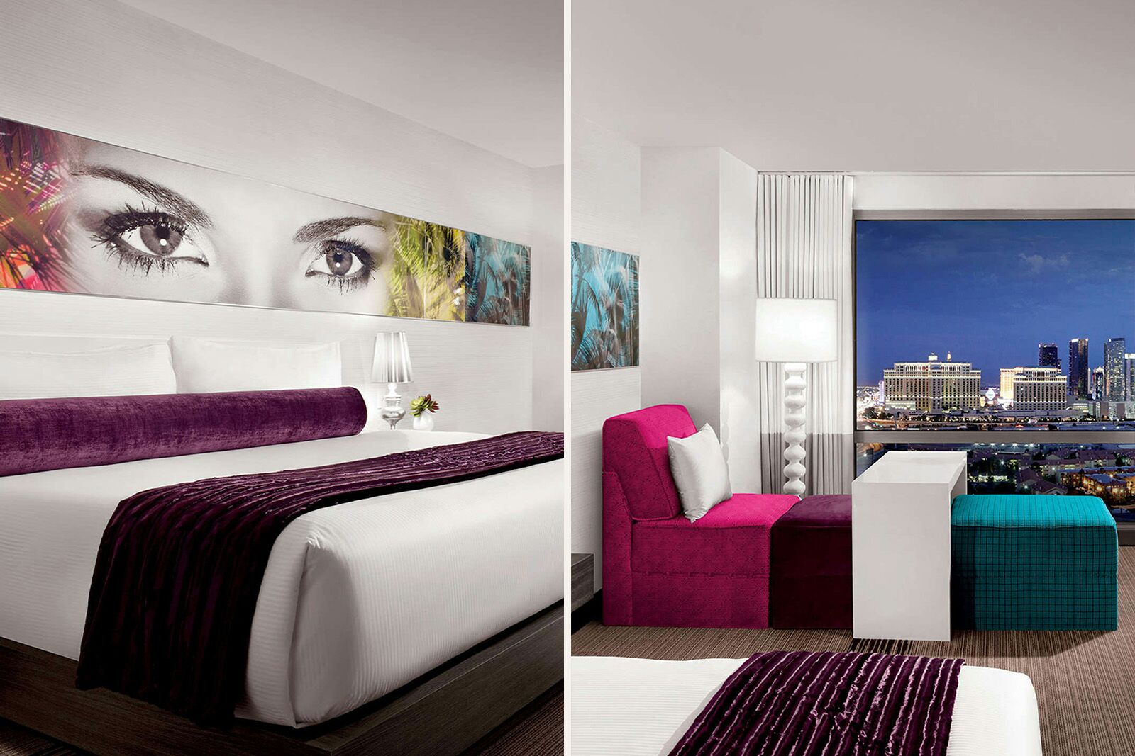 It’s hard to beat the Virgin Hotel for style in Sin City. “Chambers” are dotted across three towers with furnishings and artwork you’ll consider sneaking into your bag on check-out day. Most have views of the Strip, and all have pre-stocked mini bars for getting the night started. If you’re feeling especially flush, you could book a suite or villa. The pool and spa at this hip hotel might be the nicest in Vegas.
