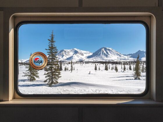 I departed Anchorage aboard the Aurora Winter Train on a Tuesday morning. The three-hour ride took me to Talkeetna, a historic town with a mining past that has evolved into the basecamp for climbers heading to Mount Denali. During the journey, I tried reindeer sausage for the first time as part of a delicious breakfast and admired the views through the train’s large windows. We arrived in Talkeetna exactly on time.