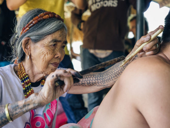 Whang-od has passed on the practice to her grandnieces, Grace Plaice and Ilyang Wigan, who tattoo alongside her, and will carry on the tradition, as she explains, “when I can no longer see.”