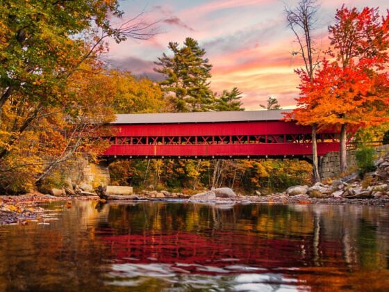 New England is fall central. Every year when the temperature drops, visitors come in droves to see the region’s trees put on their most colorful show, changing their leaves from vibrant greens to soothing yellows, oranges, and reds. The spectacle is a great way to reconnect with nature and celebrate the new season, but as it turns out, looking at nothing but falling leaves for days on end can be a tad monotonous — you might want to add a new treasure hunt to your fall foliage road trip. In between collecting fallen maple leaves, look for some of the most romantic covered bridges in New England.
