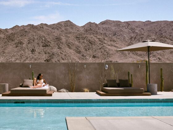 RESET sits about a five-minute drive from Joshua Tree National Park’s North Entrance and roughly two and a half hours by car from Los Angeles. Palm Springs International Airport is the closest major airport, about an hour away, and a rental car is essential for reaching the property and exploring the park. Nightly rates start around $250.
