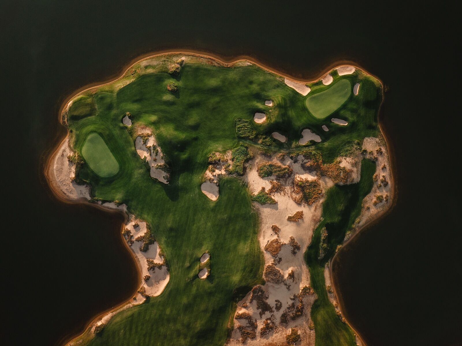 The Commons is more of a shortened course than a short course. It features 12 regulation holes, including a dramatic peninsula stretch around Luna Lake that adds both visual beauty and strategic tension. Architecture enthusiasts will appreciate shared and wraparound greens, cross-bunkering that shifts strategy by the day, and a routing that nods to Prestwick’s original 12-hole layout.