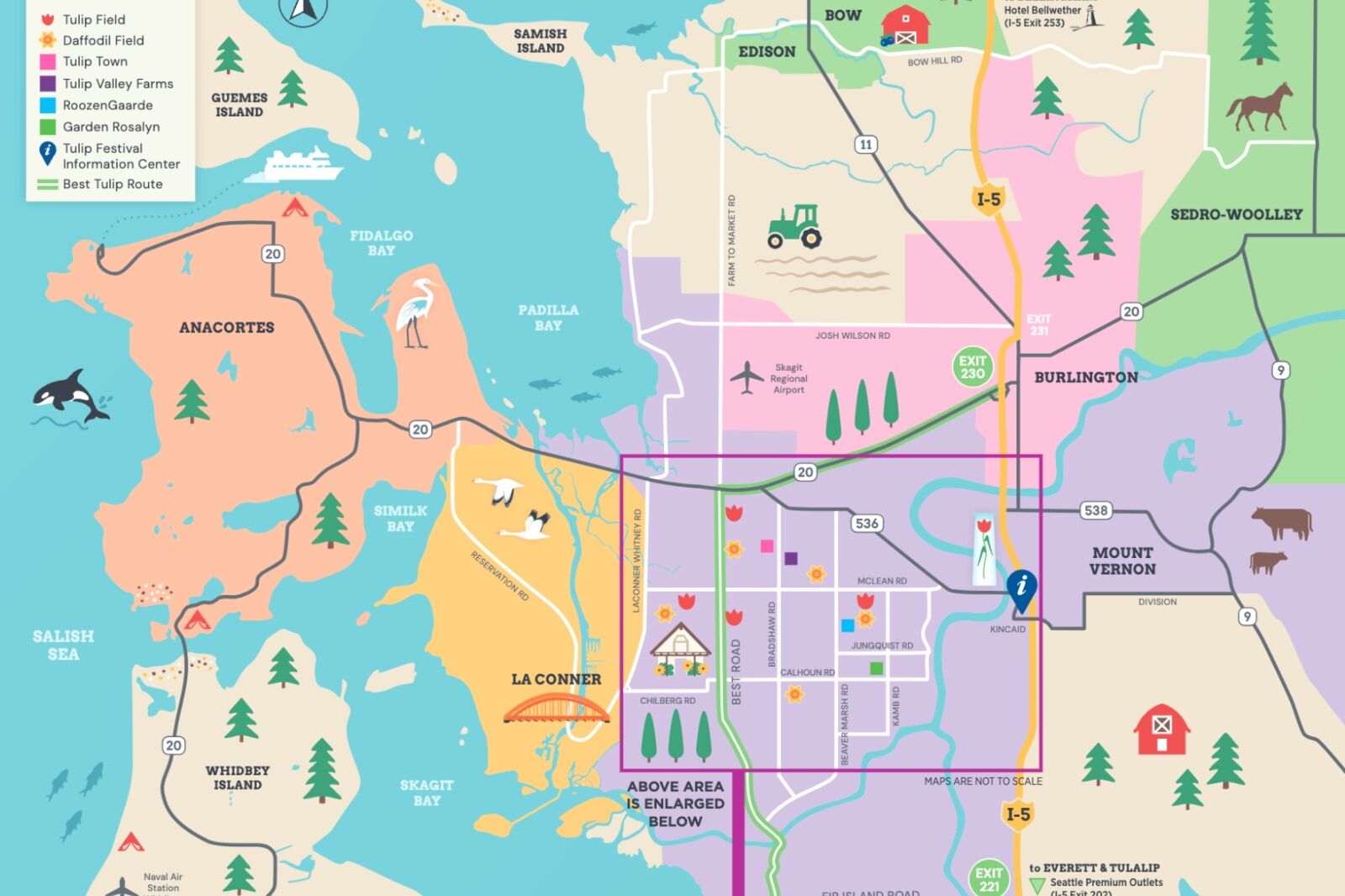 Staying in La Conner or Mount Vernon keeps you within a short drive of the main farms, with quicker access in the morning before crowds build.